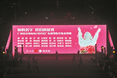 本報“你的名字,我們的榮光”廣州大型地標致敬援湖北醫療隊活動持續舉行 2484個醫護名字點亮廣州塔