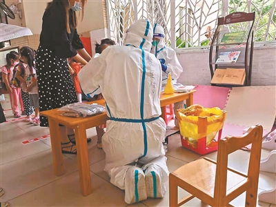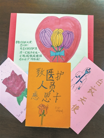 他們,進(jìn)學(xué)校進(jìn)社區(qū)為孩子采核酸;她們,送卡片送甜品為醫(yī)護(hù)喊加油 “大白”跪地為幼兒采核酸 ![]() 黎國偉全程跪地為小朋友做核酸檢測。 ![]() 中山三院醫(yī)務(wù)人員用一次性手套自制的“手套氣球”。 ![]() 孩子們用文字和圖畫表達(dá)對醫(yī)護(hù)的謝意。 家長指南: 兒童如何防新冠? 廣州日報訊 (全媒體記者張青梅 通訊員劉琪莎)廣州市衛(wèi)健委發(fā)布的疫情通報顯示,在本次本地疫情中,有數(shù)例兒童病例出現(xiàn)。為什么兒童比較容易中招?記者采訪了廣州收治新冠肺炎的定點醫(yī)院、廣州醫(yī)科大學(xué)附屬市八醫(yī)院兒科主任林菁,她表示,此次傳播主要還是傳播鏈導(dǎo)致的,與免疫力等關(guān)系不大。 那么,兒童該如何預(yù)防新冠肺炎?林菁強調(diào),在所有防疫措施里面,戴口罩是特別重要的。 “在家期間要求戴口罩不太現(xiàn)實,如果沒有呼吸道感染癥狀的可以不戴口罩,保持居室通風(fēng),但如果有呼吸道癥狀的,就一定要戴口罩,跟家人分開飲食、分開房間,防患于未然。”林菁說。 家有兒童,家長應(yīng)做到: 1.經(jīng)常開窗通風(fēng)。 每天早中晚都應(yīng)開窗通風(fēng),每次時間不少于30分鐘。通風(fēng)時,可將兒童轉(zhuǎn)移到另一房間以免受涼感冒。 2.保持家居表面清潔。 桌面、地面等經(jīng)常接觸的表面,需保持清潔。兒童的物品,如玩具和餐具等要定期消毒。 3.及時處理口鼻分泌物。 家長不要對著兒童咳嗽、打噴嚏。不要用嘴嘗試或咀嚼食物后喂食孩子,包括不要用嘴吹涼食物后給孩子喂食。不要跟孩子共用餐具。 4.減少外出,如需外出要做好防護(hù)。 兒童不應(yīng)到人員密集和空間密閉的場所。如必須外出,盡量不乘坐公共交通工具。外出時,家長要叮囑兒童不要到處摸,不要用手觸摸或揉搓口、眼、鼻等部位。 5.正確選擇并佩戴口罩。 建議兒童青少年選用符合國家標(biāo)準(zhǔn)且適用的口罩產(chǎn)品,并且正確佩戴口罩。小于1歲的孩子盡量減少外出。 6.注意手部衛(wèi)生。 兒童外出歸來、飯前便后、咳嗽打噴嚏后都應(yīng)及時洗手。家長外出回來后要更換衣物、洗手后才能抱孩子或跟孩子玩耍。 我是孩子爸 跪地為萌娃 廣州日報訊 (全媒體記者肖桂來 通訊員梁煥娣、梁靖森攝影報道)他被小朋友們稱贊為超暖的“大白”!5月27日,番禺區(qū)石樓鎮(zhèn)社區(qū)衛(wèi)生服務(wù)中心主治醫(yī)師黎國偉和同事對一家幼兒園591名兒童進(jìn)行采集核酸標(biāo)本。 怎樣才能使采樣工作順利完成,對參與本次采樣的10名醫(yī)護(hù)人員來說是一個考驗。作為孩子爸爸、又有著多年兒科診療經(jīng)驗的黎國偉,考慮到小孩的個子普遍比較矮,采樣時頭仰得太高會不舒服,這種狀態(tài)下拭子接觸咽部的反應(yīng)會很大,會增加小孩不配合采樣的概率。因此,他全程跪下了雙腿、彎下了身子、低下了頭,用嫻熟的技術(shù)為每一名小孩采樣。 一個早上,忙了兩個多小時,采樣完畢站起來時,黎國偉才感覺腳有點麻,脫掉防護(hù)服后的上衣更是擰出了汗水。幼兒園老師上前表達(dá)感謝,“醫(yī)生,膝蓋和腿都疼了吧,真是辛苦大家了!”黎醫(yī)生笑著回了一句:“這是我們的職責(zé)和工作,小朋友都很乖很配合,沒有覺得辛苦!” “這是我收過最溫暖的兒童節(jié)禮物!謝謝孩子們” 廣州日報訊 (全媒體記者翁淑賢、任珊珊 通訊員白恬、周晉安、甄曉洲、葉張翔攝影報道)昨日是六一國際兒童節(jié)。在廣州社區(qū)核酸檢測現(xiàn)場,醫(yī)務(wù)人員和市民互贈暖心禮物,大小朋友一起歡慶節(jié)日。 “感謝你們堅守在崗,不分日夜”“你們是我們學(xué)習(xí)的榜樣”……六一兒童節(jié)前夕,廣醫(yī)三院的醫(yī)護(hù)人員收到一份別樣的禮物——荔灣區(qū)蔣光鼐小學(xué)六年級(2)班的孩子們手繪了一張張精美的卡片,感謝白衣天使們守護(hù)大家的健康。 “當(dāng)時班主任托我?guī)メt(yī)院時,我覺得特別驚喜和感動。”廣醫(yī)三院產(chǎn)科護(hù)士歐昆林的孩子就讀于蔣光鼐小學(xué)六(2)班。上周學(xué)校還未停課時,班上37名同學(xué)自發(fā)制作了精美的卡片,表達(dá)對醫(yī)護(hù)人員的感謝。班主任呂綺霞老師聯(lián)系上歐昆林,請她將這些卡片送給醫(yī)院防疫一線的醫(yī)務(wù)人員。 “看到這些小可愛的禮物,心里揚起陣陣暖意,這是對我們工作的肯定,這一刻讓我覺得這個職業(yè)特別有價值,我們防疫的腳步也會更加堅定!”外出支援核酸檢測的廣醫(yī)三院急診科護(hù)士馮海明說。 “這是我收過的最溫暖的兒童節(jié)禮物了!謝謝孩子們!我們也會繼續(xù)做好防疫工作,呵護(hù)祖國未來的花朵,讓孩子們能夠健康平安地成長。”廣醫(yī)三院外出支援核酸檢測隊員、手術(shù)室護(hù)士長莊曼麗感慨道。 一大早,在天河區(qū)石牌街道第七組太陽廣場小區(qū)采集點,一位媽媽帶著女兒、兒子給中山大學(xué)附屬第三醫(yī)院醫(yī)護(hù)人員送上馬蹄爽,并邀請醫(yī)務(wù)人員和孩子們一起合影紀(jì)念這個不一般的兒童節(jié)。 在石牌街道第五組核酸檢測點,一名小女孩搬來一整箱飲料送給醫(yī)護(hù)人員,說:“白衣天使辛苦了,謝謝你們!” 孩子們的禮物讓醫(yī)務(wù)人員十分感動。為了讓小朋友們乖乖配合檢測,中山