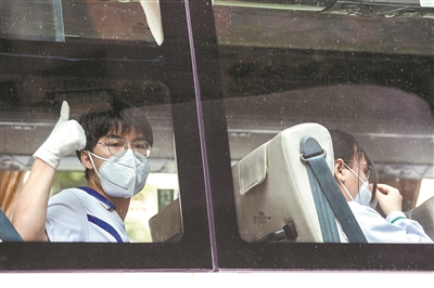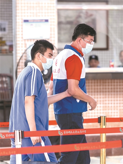 ![]() 作為隔離考點(diǎn)之一的四中津園考點(diǎn)用大巴接送考生。 ![]() 在志愿者老師的幫助下,王同學(xué)進(jìn)入考場。 ![]() 醫(yī)護(hù)對(duì)隔離病房考生的試卷、答題卡進(jìn)行二次消毒。圖/新華社發(fā) ![]() 在金道中學(xué)候考的考生。 ![]() 真光中學(xué),來自低風(fēng)險(xiǎn)區(qū)域的學(xué)生在休息區(qū)候考。 昨日,是2021年高考開考首日。在廣州疫情防控的特殊情況下,今年的高考注定不同尋常——一個(gè)人的考場、隔離病房考場、高風(fēng)險(xiǎn)地區(qū)和封閉管理區(qū)域內(nèi)的考場……這些特殊的考場,牽動(dòng)了所有人的心。在這些考場里,我們能看到考生追逐夢想的“不放棄”,也能看到所有人拼盡全力、讓所有考生應(yīng)考盡考的“不拋棄”。 文/廣州日報(bào)全媒體記者曾俊、張青梅、劉曉星、吳多、林霞虹、謝澤楷、董業(yè)衡、何鉆瑩、張曉宜 圖/廣州日報(bào)全媒體記者蘇韻樺、吳子良、廖雪明、李波、陳憂子、楊耀燁、汪式奇(除署名外) 隔離病房考場: 考生精神狀態(tài)不錯(cuò) 高考拉開序幕,大家都很關(guān)注“特殊”高三考生——廣州醫(yī)科大學(xué)附屬市八醫(yī)院隔離病房里考生的情況。據(jù)悉,市八醫(yī)院共收治了兩名特殊考生,分別是之前已經(jīng)報(bào)道的17歲無癥狀考生和7日凌晨3時(shí)多收治的考生。昨天,隔離病房里“特殊考場”的兩名考生均順利開考。 記者了解到,7日清晨,市八醫(yī)院再次安排專家給考生做了全面體格檢查,確認(rèn)可以正常參加考試。其中一名17歲的無癥狀感染者考生,精神狀態(tài)等各方面都非常不錯(cuò)。另外一個(gè)考生是6月7日凌晨3時(shí)多送入市八醫(yī)院的。據(jù)介紹,這位考生在6日晚第一次核酸檢測呈陽性,7日凌晨緊急復(fù)核仍顯示陽性,相關(guān)部門馬上啟動(dòng)緊急措施,將其從隔離點(diǎn)轉(zhuǎn)運(yùn)到市八醫(yī)院,考生7日凌晨3時(shí)到達(dá)市八醫(yī)院時(shí)發(fā)著低燒,其本人考試意愿強(qiáng)烈,經(jīng)過專家評(píng)估,本著“應(yīng)考盡考、能考盡考、愿考盡考”要求,市八醫(yī)院為他安排了考場。為了讓考生輕松應(yīng)對(duì)考試,醫(yī)院還專門做了兩個(gè)愛心加油牌,給考生加油鼓勁。 據(jù)悉,此次市八醫(yī)院準(zhǔn)備了4間考場,昨天啟用了2間。考場內(nèi)一人一桌一椅,按考生面向病房門口方向布置。考場里面安裝了高清監(jiān)控?cái)z像頭,實(shí)時(shí)錄音錄像,實(shí)時(shí)上傳考試期間的監(jiān)控畫面。11時(shí)30分,高考首科考試科目結(jié)束,兩名考生分別走出考場,考試結(jié)束后,醫(yī)務(wù)人員對(duì)試卷、答題卡、草稿紙等,均嚴(yán)格按照2次全流程消毒,再將試卷和答題卡裝入試卷袋并密封后交監(jiān)考員。 據(jù)市八醫(yī)院副院長羅紅彬介紹,考前,醫(yī)院的中醫(yī)科、營養(yǎng)科專門為考生配了營養(yǎng)餐,提供營養(yǎng)又有助于身體恢復(fù)的靚湯;怕孩子心理壓力大,專門安排了心理輔導(dǎo)醫(yī)生,結(jié)合孩子的實(shí)際情況和具體需求提供心理輔導(dǎo);另外,也按照要求為考生準(zhǔn)備了考試用具筆、尺子等。 高風(fēng)險(xiǎn)和封閉區(qū)域考點(diǎn): 高考就和平時(shí)模擬考一樣 金道中學(xué)考點(diǎn)是廣州高風(fēng)險(xiǎn)地區(qū)和封閉管理區(qū)域的4個(gè)考點(diǎn)之一。為保證考生安全,居家考生由愛心送考出租車隊(duì)“點(diǎn)對(duì)點(diǎn)”“一對(duì)一”提供出行服務(wù)。 肖兵師傅是一名出租車司機(jī)。他早上6時(shí)就起床去公司取車、穿上防護(hù)服,7時(shí)就抵達(dá)家住鶴洞橋底的考生小區(qū)門口。其實(shí),肖兵也是一位高三考生家長。“孩子在湖南衡陽考試,本來計(jì)劃陪孩子高考,但被選入送考車隊(duì)沒能回去。”肖兵說,他并不覺得有什么遺憾,“我在這邊送孩子,孩子在家鄉(xiāng)也會(huì)有人送。”在考生下車前,他也送上一句鼓勵(lì):“好好考試,爭取好成績。” 同處荔灣區(qū)白鶴洞街真光中學(xué)與出現(xiàn)過確診病例的鶴園小區(qū)、廣鋼新城“近在咫尺”。從5月30日起,真光中學(xué)623名高三考生就一直封閉在校園中全力備考。按照疫情防控規(guī)定,在真光中學(xué)考點(diǎn)考試的就只有住校封閉備考的考生。據(jù)了解,這次學(xué)校的高考甚至和平時(shí)模擬考一樣,學(xué)生們吃過早飯,就陸陸續(xù)續(xù)進(jìn)入考場外的備考區(qū)。 稍微有所不同的是,保安會(huì)不時(shí)提醒學(xué)生“進(jìn)考場先洗手”,而考場里的密度更低,從30名考生一個(gè)考場變?yōu)?4名考生一個(gè)考場。在備考區(qū),校長對(duì)每一位走過的同學(xué)一遍遍喊著“同學(xué),加油”,老師們則穿上寓意“開門紅”的紅色上衣、舉著封閉前就準(zhǔn)備好的標(biāo)語加油鼓勁。 “沒有任何突發(fā),順利開考,是一個(gè)好的開端,大家都很欣慰。”有老師這樣說。 荔灣區(qū)隔離考點(diǎn): 96名次密接考生順利開考 昨日,記者來到位于荔灣區(qū)的廣州市第四中學(xué)津園校區(qū)考點(diǎn)。今年高考,四中津園校區(qū)作為隔離考點(diǎn)之一,承擔(dān)荔灣區(qū)次密接考生隔離考點(diǎn)任務(wù)。津園校區(qū)考點(diǎn)共設(shè)置考室24個(gè),每個(gè)考場4名考生,考生共96人。 得益于