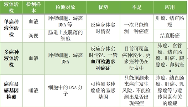 以上表格中的NGS液體活檢均為基于血液的液體活檢 目前國內可及的NGS液體活檢技術中,不同的產品有不同側重和表現(*僅限女性受檢者)(表2)。