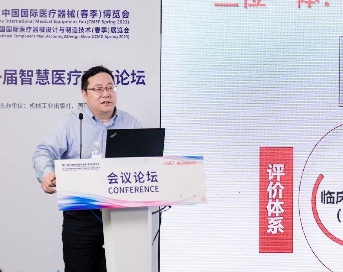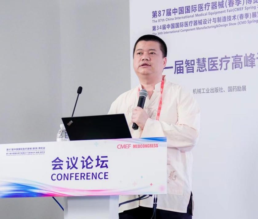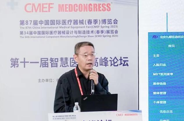 圖5 姜天驕 于廣軍認為,醫院高質量發展的重點行動是建立優質高效的整合型醫療服務體系、以人為本的“智慧醫院”。要解決三個方面的問題:一是感知問題,實現全方位的自動信息的采集,作為物聯化就像我們人的感覺器官;二是進行及時有效的傳輸,三是要有更加智能的決策支持,核心還是要體現以人為本、因需而變。圖5 于廣軍正在主題演講。