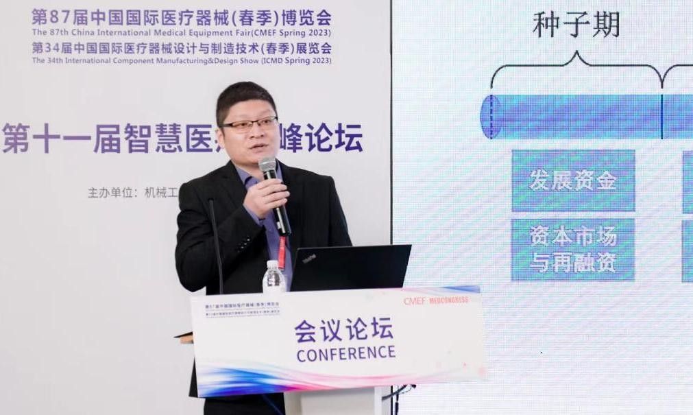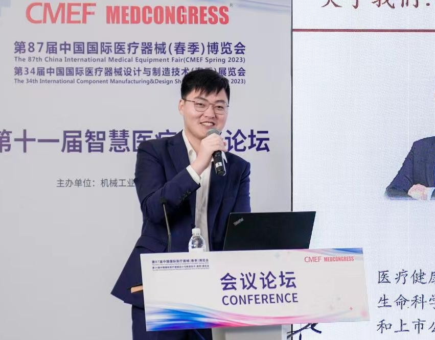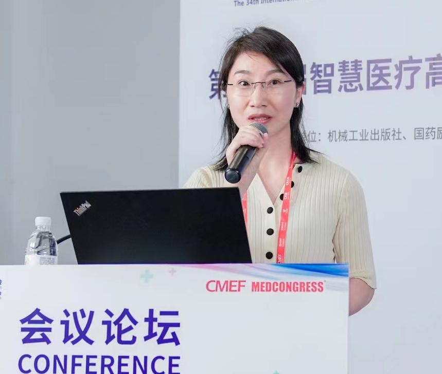 圖15劉洋 王可書表示,當下市場的暗淡疊加了資金面、基本面、情緒面三個方向,產生了大內卷背景下的供需雙降。醫療器械行業需要以長期主義態度來做投資。創新科技與前沿學術在這里交融,無限商機與深情厚誼在這里迸發。圖15王可書正在進行主題演講。