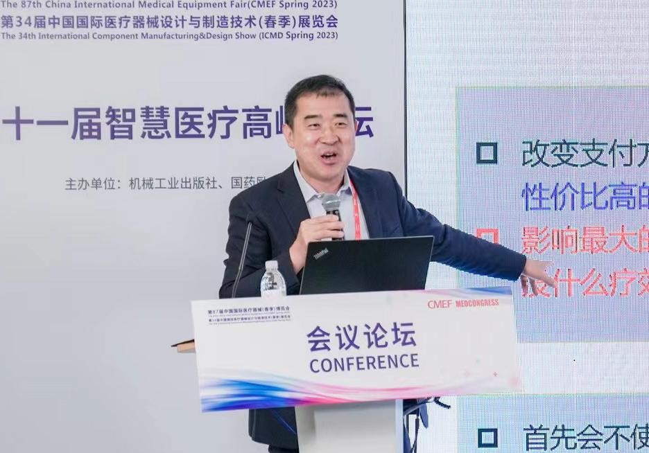 圖11 王丹 羅偉就醫療經營實踐發表了看法,提出高質量發展要求,要從基于經驗的粗放的管理,向逐步轉向基于科學的精細的管理方式。圖11羅偉正在進行主題演講。
