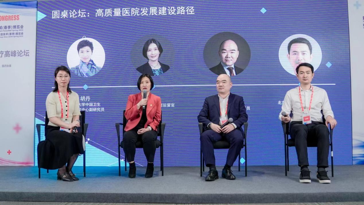 圖18 圓桌論壇二 從左到右:陳暉、管弦悅、宋高廣、張鵬、涂宏鋼 圓桌論壇三的主題是高質量醫院發展建設路徑,主持人胡丹,論壇嘉賓包括陽紅、羅偉劉洋。探討了高質量醫院發展的核心是什么?如何確保醫院服務質量以及醫療技術水平的提升以及在醫療保健市場競爭日益激烈的背景下,如何實現醫院規模化發展,探索新的盈利增長點?圖18 圓桌論壇三。