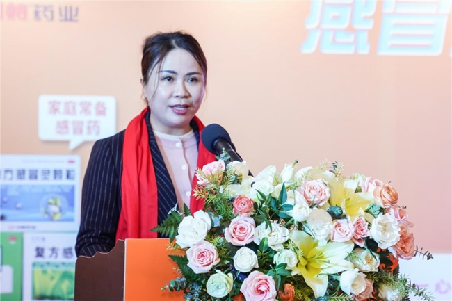 樂(lè)達(dá)傳媒集團(tuán)董事長(zhǎng)傅萬(wàn)芝致辭 在產(chǎn)品展示環(huán)節(jié),雙蟻藥業(yè)連鎖事業(yè)部總監(jiān)蒙艷妮向來(lái)賓介紹并展示了復(fù)方感冒靈顆粒。雙蟻復(fù)方感冒靈顆粒,添加抗病毒藥物(山銀花、五指柑、南板藍(lán)根),具有治感冒、抗病毒、防流感多重功效。多年來(lái)廣受好評(píng)并獲得廣大家庭信賴(lài),是家庭常備感冒藥。品牌共建戰(zhàn)略合作伙伴有一心堂、大參林、老百姓大藥房、健之佳、康全藥業(yè)等連鎖藥房。