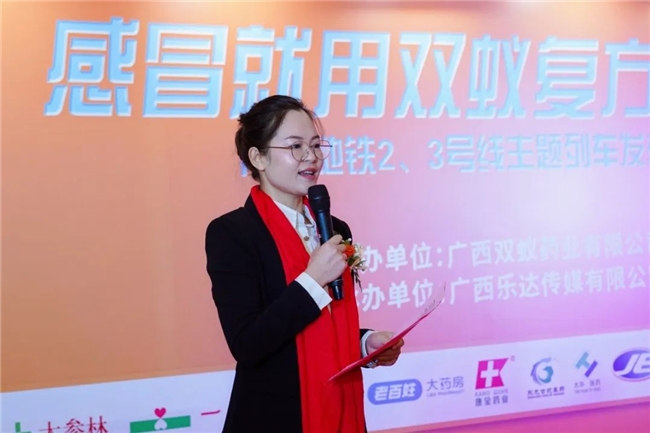【南寧地鐵2.3號(hào)線】 大參林廣西營(yíng)運(yùn)大區(qū)副總經(jīng)理梁梅致辭中表示:“大參林醫(yī)藥集團(tuán)和雙蟻藥業(yè),兩家企業(yè)發(fā)揮各自?xún)?yōu)勢(shì)攜手合作,這是一次重要的進(jìn)步。雙蟻復(fù)方感冒靈顆粒走進(jìn)地鐵,走進(jìn)千家萬(wàn)戶(hù),為廣大家庭提供健康服務(wù),并祝愿雙蟻藥業(yè)在新的一年取得新突破。”