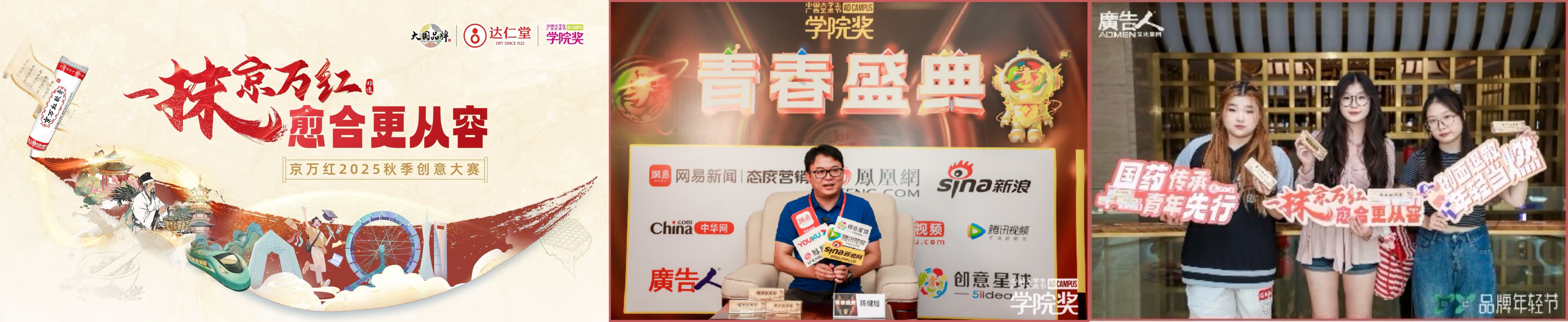 為了加速品牌年輕化轉型,搶占未來消費主力軍,京萬紅軟膏2025年以“一抹京萬紅,愈合更從容”為主題再度攜手大廣節學院獎秋季賽。通過開放平面設計、短視頻、文創周邊等六大賽道征集作品,吸引超百萬高校學子參與,活動開始僅兩個月已累計產出創意作品1000余件,將“常備京萬紅軟膏”的認知深刻植入青年群體。