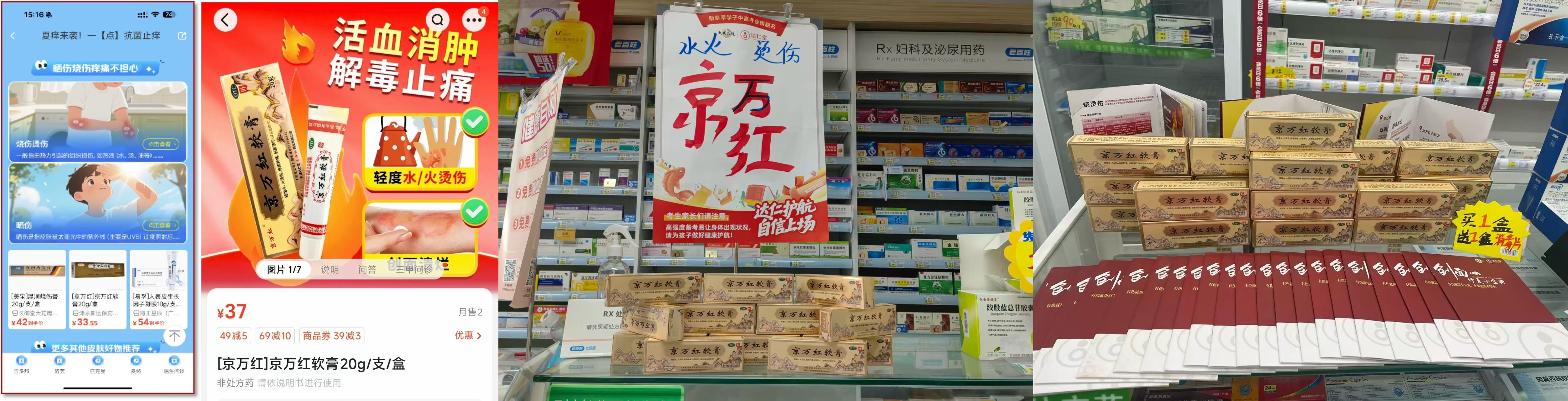 在O2O渠道,聯合“美團買藥”通過“智搜”工具精準鎖定燙傷、曬傷等核心場景,參與平臺站內活動收獲流量加持,以“好藥嚴選”工具降低消費者決策成本,最終以“創傷修復方案”的組合銷售方式助力成交。自2025年項目啟動以來,平臺GTV同比增速超過100%,遠超同類競品,顯示出了強大的平臺契合度,為消費者提供了更優質的購藥體驗。