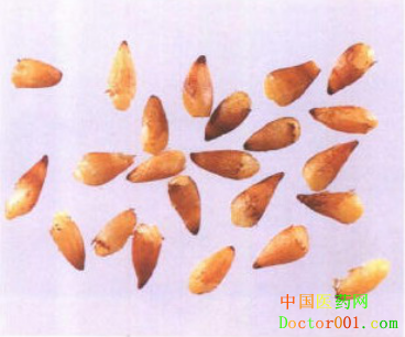 【標題】 柏子仁 【拼音】 Baiziren 【概述】 為柏科植物側柏Platycladus orientalis (L.) Franco的種仁。主產于山東、河南、河北,此外陜西、湖北、甘肅、云南等地亦產。冬初種子成熟時采收,曬干,壓碎種皮,簸凈,陰干。生用。 【性味歸經】 甘,平。歸心、腎、大腸經。 【功效】 養心安神,潤腸通便。 【應用】 1.心悸失眠。本品味甘質潤,藥性平和,主入心經,具有養心安神之功效,多用于心陰不足,心血虧虛以致心神失養之心悸怔忡、虛煩不眠、頭暈健忘等,常與人參、五味子、白術等配伍,如柏子仁丸(《普濟本事方》);也可與酸棗仁、當歸、茯神等同用,如養心湯(《校注婦人大全良方》);若治心腎不交之心悸不寧、心煩少寐、夢遺健忘,常以本品配伍麥門冬、熟地黃、石菖蒲等以補腎養心,交通心腎,如柏子養心丸(《體仁匯編》)。 2.腸燥便秘。本品質潤,富含油脂,有潤腸通便之功。用于陰虛血虧,老年、產后等腸燥便秘證,常與郁李仁、松子仁、杏仁等同用,如五仁丸(《世醫得效方》)。 此外,本品甘潤,可滋補陰液,還可用治陰虛盜汗、小兒驚癇等。 【注意】 便溏及多痰者慎用。 【用法用量】 煎服,10~20g。大便溏者宜用柏子仁霜代替柏子仁。 【臨床研究】 1.化學成分:含脂肪油,并含少量揮發油、皂苷及植物甾醇、維生素A、蛋白質等。 2.藥理作用:柏子仁單方注射液可使貓的慢波睡眠深睡期明顯延長,并具有顯著的恢復體力作用。 3.臨床研究: 據報道,以柏子仁、當歸等量制丸,每次9g,每日三次,治療血虛之脫發,效果滿意(全國中草藥新醫療法展覽會資料選編,1972,373)。另有用柏子仁等治療變異性心絞痛、夢游癥、男性臟躁證等。 【參考文獻】 1.《神農本草經》:“柏實,味甘平,主驚悸,安五臟,益氣,除風濕痹,久服令人潤澤,美色,耳目聰明。” 2.《本草綱目》:“養心氣,潤腎燥,安魂定魄,益智寧神。”“柏子仁性平而不寒不燥,味甘而補,辛而能潤,其氣清香,能透心腎,益脾胃。” 【圖片】 側柏《中國藥典》 ![]() 柏子仁 ![]() 柏子仁側柏樹 ![]() 藥材柏子仁(去種皮) ![]() 藥材柏子仁(帶種皮) ![]() (責任編輯:Doctor001) |