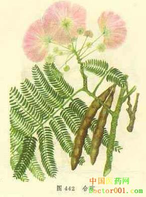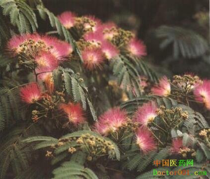 【標題】 合歡皮 【拼音】 Hehuanpi 【概述】 為豆科植物合歡Albizia julibrissin Durazz.的干燥樹皮。全國大部分地區都有分布,主產于長江流域各省。夏、秋二季剝取樹皮,曬干,切段生用。 【性味歸經】 甘,平。歸心、肝、肺經。 【功效】 解郁安神,活血消腫。 【應用】 1.心神不寧,忿怒憂郁,煩躁失眠。本品性味甘平,入心、肝經,善解肝郁,為悅心安神要藥。適宜于情志不遂,忿怒憂郁,煩躁失眠,心神不寧等癥,能使五臟安和,心志歡悅,以收安神解郁之效。可單用或與柏子仁、酸棗仁、首烏藤、郁金等安神解郁藥配伍應用。 2.跌打骨折,血瘀腫痛。本品入心、肝血分,能活血祛瘀,續筋接骨,故可用于跌打損傷,筋斷骨折,血瘀腫痛之癥,如《續本事方》用合歡皮配麝香、乳香研末,溫酒調服治跌打仆傷,損筋折骨。亦可與桃仁、紅花、乳香、沒藥、骨碎補等活血療傷,續筋接骨藥配伍同用。 3.肺癰,瘡癰腫毒。本品有活血消腫之功,能消散內外癰腫。用治肺癰,胸痛,咳吐膿血,單用有效,如黃昏湯(《千金方》)。亦可與魚腥草、冬瓜仁、桃仁、蘆根等清熱消癰排膿藥同用;治瘡癰腫毒,常與蒲公英、紫花地丁、連翹、野菊花等清熱解毒藥同用。 【注意】 孕婦慎用 【用法用量】 煎服,6~12g。外用適量。 【成藥】 合歡花 【臨床研究】 1.化學成分:本品含皂苷,黃酮類化合物,鞣質和多種木脂素及其糖苷,吡啶醇衍生物的糖苷等。 2.藥理作用:合歡皮水煎液及醇提取物均能延長小鼠戊巴比妥鈉睡眠時間;對妊娠子宮能增強其節律性收縮,并有終止妊娠抗早孕效應;其水、醇提取物分別具有增強小鼠免疫功能及抗腫瘤作用。 3.臨床研究: 據報道,用合歡皮15g,金錢草50g,水煎飯前服,治療3例肝膿腫,服藥6~12天,皆治愈(浙江中醫雜志,1983,10:445);用加味合昏湯(合歡皮、柴胡、黃芩、葛根、桃仁、紅藤、甘草)為主方,治療大葉性肺炎、肺膿瘍、胸膜炎共28例,全部治愈(陜西中醫,1981,4:11)。 【參考文獻】 1.《神農本草經》:“主安五臟,和心志,令人歡樂無憂。” 2.《日華子本草》:“煎膏,消癰腫,續筋骨。” 3.《本草綱目》:“和血,消腫,止痛。” 【圖片】 合歡 ![]() 合歡《中藥學》 ![]() 合歡《本草綱目》 ![]() 合歡皮 ![]() 合歡皮植株 ![]() 合歡皮藥材及飲片 ![]() 藥材合歡皮 ![]() (責任編輯:Doctor001) |