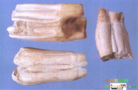 為古代多種大型哺乳動(dòng)物的牙齒骨骼化石。采挖龍骨時(shí)即收集龍齒,刷凈泥土,敲去牙床,研碎生用或煅用。性味甘、澀,涼。歸心、肝經(jīng)。功能鎮(zhèn)驚安神,主要適用于驚癇癲狂、心悸怔忡、失眠多夢(mèng)等證。用法、用量與龍骨相同。生龍齒功專鎮(zhèn)驚安神;煅龍齒則略兼收澀之性。