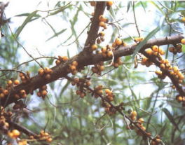 【標題】 沙棘 【拼音】 Shaji 【概述】 淡胡頹子科植物沙棘Hippophae rhamnoides L.的成熟果實。主產于西南、華北、西北地區。野生或栽培。秋冬二季果實成熟時或天冷凍硬后采收,除去雜質,曬干或蒸后曬干,生用。 【性味歸經】 甘、酸、溫。歸脾、胃、肺、心經。 【功效】 健脾消食,止咳祛痰,活血祛瘀。 【應用】 1.脾虛食少。本品能溫養脾氣,開胃消食;其味甘酸,又可化陰生津。能治療脾氣虛弱或脾胃氣陰兩傷,食少納差,消化不良,脘脹腹痛,體倦乏力等癥。如《四部醫典》以本品與芫荽子、藏木香、余甘子、石榴子等同用。 2.咳嗽痰多。本品入于肺經,能止咳祛痰,為藏醫和蒙醫治療咳喘痰多較為常用的藥物。可以單用,如《四部醫典》以沙棘適量,煎煮濃縮為膏(即沙棘膏),主治咳嗽。現代臨床報道,以沙棘精口服液治療慢性支氣管炎,能明顯緩解咳嗽、咯痰等癥狀。亦可配伍其他止咳祛痰藥,如五味沙棘散(《青海省藏藥標準》)本品與余甘子、白葡萄、甘草等同用。 3.瘀血證。本品具有活血祛瘀作用,可以治療胸痹心痛,跌打損傷,婦女月經不調等多種瘀血證。因其較長于活血通脈,故以胸痹瘀滯疼痛者多用。單用有效。現代多提取沙棘總黃酮入藥,如心達康膠囊。 【用法用量】 煎服,3~9g。 【臨床研究】 1.化學成分:本品含維生素類(VC、VA、VE、VB1、VB2、VB12、VK、)及葉酸,其中VC在果實中的平均含量為178mg%,最高達900mg%;黃酮類及萜類;蛋白質及多種氨基酸;脂肪及脂肪酸;糖類。此外,尚含生物堿,香豆素及酸性物質,并富含礦物質和微量元素。 2.藥理作用:沙棘黃酮能改善心肌微循環,降低心肌耗氧量,抗血管硬化,抗炎等作用;沙棘油及其果汁有抗疲勞、降血脂、抗輻射、抗潰瘍、保肝及增強免疫功能等作用。 【參考文獻】 1.《晶珠本草》:“活肺病、喉病……益血”。 2.《如意寶樹》:“沙棘果治消化不良,肝病。” 【圖片】 沙棘 ![]() 藥材沙棘 ![]() 藥材沙棘橫切面 ![]() (責任編輯:Doctor001) |