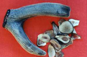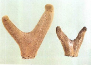【標題】 鹿茸 【拼音】 Lurong 【概述】 為脊椎動物鹿科梅花鹿Cervus nippon Temminck 或馬鹿Crvus elaphus L.等雄鹿頭上尚未骨化而帶茸毛的幼角。主產于吉林、黑龍江、遼寧、內蒙、新疆、青海等地。其它地區也有人工飼養。夏秋兩季雄鹿長出的新角尚未骨化時,將角鋸下或用刀砍下,用時燎去毛,切片后陰干或烘干入藥。 【性味歸經】 甘、咸,溫。歸腎、肝經。 【功效】 補腎陽,益精血,強筋骨,調沖任,托瘡毒。 【應用】 1.腎陽虛衰,精血不足證。本品甘溫補陽,甘咸滋腎,稟純陽之性,具生發之氣,故能壯腎陽,益精血。若腎陽虛,精血不足,而見畏寒肢冷、陽痿早泄、宮冷不孕、小便頻數、腰膝酸痛、頭暈耳鳴、精神疲乏等,均可以本品單用或配入復方。如鹿茸酒,與山藥浸酒服,治陽痿不舉,小便頻數;或與當歸、烏梅膏為丸,治精血耗竭,面色黧黑,耳聾目昏等(《濟生方》);亦常與人參、黃芪、當歸同用治療諸虛百損,五勞七傷,元氣不足,畏寒肢冷、陽痿早泄、宮冷不孕、小便頻數等證,如參茸固本丸(《中國醫學大辭典》)。 2.腎虛骨弱,腰膝無力或小兒五遲。常以本品補腎陽,益精血,強筋骨多與五加皮、熟地、山萸肉等同用,如加味地黃丸(《醫宗金鑒》);亦可與骨碎補、川斷、自然銅等同用,治骨折后期,愈合不良。 3.婦女沖任虛寒,崩漏帶下。本品補腎陽,益精血而兼能固沖任,止帶下。與烏賊骨、龍骨、川斷等同用,可治崩漏不止,虛損贏瘦,如鹿茸散(《證治準繩》)。若配狗脊、白蘞,可治白帶過多,如白斂丸(《濟生方》)。 4.瘡瘍久潰不斂,陰疽瘡腫內陷不起。本品補陽氣、益精血而達到溫補內托的目的。治療瘡瘍久潰不斂,陰疽瘡腫內陷不起,常與當歸、肉桂等配伍,如陽和湯(《外科全生集》)。 【注意】 服用本品宜從小量開始,緩緩增加,不可驟用用大量,以免陽升風動,頭暈目赤,或傷陰動血。凡發熱者均當忌服。 【用法用量】 研末吞服,1~2g,或入丸、散。 【成藥】 鹿角 鹿角膠 鹿角霜 【參考文獻】 1.《神農本草經》:“主漏下惡血,寒熱驚癇,益氣強志,生齒不老。” 2.《別錄》:“療虛勞灑灑如瘧,贏瘦,四肢酸痛,腰脊痛,小便利,泄精溺血。” 3.《本草綱目》:“生精補髓,養血益陽,強筋健骨。治一切虛損,耳聾目暗,眩暈虛痢。” 【圖片】 梅花鹿《中藥學》 ![]() 梅花鹿《本草綱目》 ![]() 花鹿茸 ![]() 藥材梅花鹿茸 ![]() 藥材馬鹿茸 ![]() 藥材鹿茸 ![]() 血片/黃鹿茸片 ![]() 馬鹿 ![]() 馬鹿《中藥學》 ![]() 馬鹿《本草綱目》 ![]() 馬鹿茸 ![]() 鹿茸 鹿茸梅花鹿活體 ![]() 鹿角膠/鹿角霜 ![]() 【表格】 鹿茸《中藥歌決》 【歌決】 鹿茸甘溫歸肝腎,固精壯陽健骨筋; 腎虛陽痿腰腿痛,遺精心悸頭眩暈。 (責任編輯:Doctor001) |