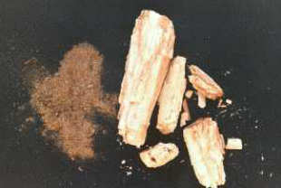 【標題】 陽起石 【拼音】 Yangqishi 【概述】 為硅酸鹽類礦物陽起石Actinolite或陽起石石棉A. asbestus的礦石。主產(chǎn)于河北、河南、山東、湖北、山西等地。全年均可采挖。去凈泥土、雜質(zhì)。黃酒淬過,碾細末用。 【性味歸經(jīng)】 咸,溫。歸腎經(jīng)。 【功效】 溫腎壯陽。 【應用】 陽痿不舉,宮冷不孕。本品溫腎壯陽,強陽起痿,用治男子陽痿遺精,女子宮冷不孕,崩中漏下,以及腰膝冷痛等癥。單用本品煅后研末,空心鹽湯送服,用治陽痿陰汗(《普濟方》);用本品煅后,與鐘乳石等分為細末,加酒煮附子末,面糊為丸,空腹米湯送下,治下元虛冷,精滑不禁,便溏足冷(《雜病源流犀燭》);或與鹿茸、菟絲子、肉蓯蓉等配伍,用治精清精冷無子,如陽起石丸(《婦科玉尺》);若與吳茱萸、干姜、熟地黃等配伍,用治子宮虛寒不孕,如陽起石丸《和劑局方》。 【注意】 陰虛火旺者忌用。不宜久服。 【用法用量】 煎服,3~6g,或入丸、散服。 【臨床研究】 1.化學成分:本品成分是Ca2(Mg、Fe)[Si4O11][OH]2。 2.臨床研究: 用陽起石、淫羊藿、熟地黃等配伍治療陽痿有效(中醫(yī)民間小單方.北京科學技術(shù)文獻出版社,1986,102)。 【參考文獻】 1.《神農(nóng)本草經(jīng)》:“主崩中漏下,破子臟中血,微瘕結(jié)氣,寒熱,腹痛無子,陰痿不起,補不足。” 2.《名醫(yī)別錄》:“療男子莖頭寒,陰下濕癢,去臭汗,消水腫。久服不饑,令人有子。” 3.《藥性論》:“補腎氣精乏,腰痛膝冷,溫痹,能暖女子子宮久冷,冷微寒瘕,止月水不定。” 【圖片】 淬陽起石/陽起石 ![]() 陽起石 ![]() (責任編輯:Doctor001) |