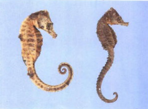 【標題】 海馬 【拼音】 Haima 【概述】 為海龍科動物線紋海馬Hippocampus kelloggi Jordan et Snyder、刺海馬H .histrix Kaup、大海馬H. kuda Bleeker三斑海馬H. trimaculatus Leach或小海馬(海沮)H.japomicus Kaup的干燥體。主產于廣東沿海的陽江、潮汕一帶,山東煙臺、青島等地。其次遼寧、福建等沿海地區亦產。野生與養殖均有。夏秋季捕撈,洗凈,曬干,或除去內臟曬干。搗碎或研粉用。 【性味歸經】 甘,溫。歸肝、腎經。 【功效】 補腎壯陽,調氣活血。 【應用】 1.陽痿、遺精遺尿。本品甘溫,溫腎陽,壯陽道,用治腎陽虧虛,陽痿不舉,腎關不固,遺精遺尿等癥,常與鹿茸、人參、熟地黃等配伍應用,如海馬保腎丸(《北京市中藥成方選集》);若治療夜尿頻繁,可與魚鰾、枸杞子、紅棗等同用,如海馬湯(《中藥臨床應用》)。 2.腎虛作喘。本品補益腎陽,有引火歸原,接續真氣之功。用治腎陽不足,攝納無權之虛喘,常與蛤蚧、胡桃肉、人參、熟地黃等配伍,以增強藥力。 3.癥瘕積聚,跌打損傷。本品入血分,有助陽活血,調氣止痛之能。用治氣滯血瘀,聚而成形之癥瘕積聚,每與木香、大黃、巴豆等同用,如木香湯(《圣濟總錄》);用治氣血不暢,跌打瘀腫,可與血竭、當歸、川芎、乳香、沒藥等配伍。 4.疔瘡腫毒。海馬調氣活血,能使血瘀得散,氣滯得通,用治氣血凝滯,榮衛不和,經絡阻塞,肌肉腐潰之瘡瘍腫毒,惡瘡發背,可與穿山甲、水銀、朱砂等配伍,如海馬拔毒散(《急救仙方》)。 【注意】 孕婦及陰虛火旺者忌服。 【用法用量】 煎服,3~9g。外用適量,研末敷患處。 【臨床研究】 1.化學成分:海馬含有大量的鎂和鈣,其次為鋅、鐵、鍶、錳,以及少量的鈷、鎳和鎘。 2.藥理作用:海馬的乙醇提取物,可延長正常雌小鼠的動情期,并使子宮及卵巢(正常小鼠)重量增加。海馬能延長小鼠缺氧下的存活時間,延長小鼠的游泳時間,顯示了較好的抗應激能力。 3.臨床研究: 海馬、人參等配伍組成無價丹口服治療陽痿有效(福建中醫藥,1993,24,(4):8);海馬蛤蚧散治療治療男性不育效顯(國醫論壇,1995,10,(4):29)。 【參考文獻】 1.《本草綱目》:“暖水道,壯陽道,消癥塊,治疔瘡腫毒。” “入腎經命門,專善興陽,功不亞于海狗。更善墮胎,故能催生也。” 2.《本草品匯精要》:“調氣和血。” 3.《本經逢原》:“陽虛多用之,可代蛤蚧。” 【圖片】 克氏海馬 ![]() 海馬 ![]() 海馬干品 ![]() 藥材三斑海馬 ![]() 藥材刺海馬 ![]() 藥材大海馬 ![]() 藥材小海馬 ![]() 藥材線紋海馬 ![]() 【表格】 海馬《中藥歌決》 【歌決】 海馬咸溫歸入腎,壯陽補腎健骨筋; 陽痿遺精腰膝痛,神衰健忘耳鳴暈。 (責任編輯:Doctor001) |