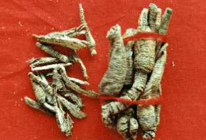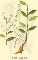 【標題】 南沙參 【拼音】 Nanshashen 【概述】 為桔梗科植物輪葉沙參Adenophora tetraphylla (Thunb.)Fisch.或沙參A. Stricta Miq. 的根。主產于安徽、江蘇、浙江等地。春秋二季采挖,除去須根,趁鮮刮去粗皮洗后干燥,切厚片或短段生用。 【性味歸經】 甘,微寒。歸肺、胃經。 【功效】 養陰清肺,清胃生津,補氣,化痰。 【應用】 1.肺陰虛證。本品甘潤而微寒,能補肺陰、潤肺燥,兼能清肺熱。亦適用于陰虛肺燥有熱之干咳痰少、咳血或咽干音啞等癥。其潤肺清肺之力均略遜于北沙參。但對肺燥痰粘,咯痰不利者,因兼有一定的祛痰的作用,可促進排痰;對氣陰兩傷者,還略能補脾肺之氣,可氣陰兩補。常與北沙參、麥冬、杏仁等潤肺清肺及對癥之品配伍。 2.胃陰虛證。本品又能養胃陰,生津止渴,并清胃熱。適用于胃陰虛有熱之口燥咽干、大便秘結、舌紅少津及饑不欲食、嘔吐等證。本品養胃陰、清胃熱之力亦不及北沙參。但本品兼能補益脾氣,對于胃陰脾氣俱虛之證,有氣陰雙補之效,對熱病后期,氣陰兩虛兩余熱未清不受溫補者,尤為適宜。多與玉竹、麥冬、生地等養胃陰、清胃熱之品配伍,如益胃湯(《溫病條辨》)。 【注意】 反藜蘆。 【用法用量】 煎服,9~15g。 【臨床研究】 1.化學成分:輪葉沙參含三萜類皂苷、黃酮類化合物、多種萜類和烴類混合物、蒲公英萜酮、β-谷甾醇、胡蘿卜苷、飽和脂肪酸、沙參酸甲酯和沙參醇。沙參中含呋喃香豆精類。 2.藥理作用:杏葉沙參可提高細胞免疫和非特異性免疫,且可抑制體液免疫,具有調節免疫平衡的功能;輪葉沙參有祛痰作用,其祛痰作用較紫菀差;1%沙參浸劑對離體蟾蜍心臟有明顯強心作用;體外試驗,沙參水浸劑(1:2)有抗真菌作用。 3.臨床研究: 據報道,以本品配伍麥冬、金銀花等藥,制成蜜丸,空腹時含化、緩咽,1日3~5次,治療食管炎12例,治愈8例,好轉3例,無效1例(福建中醫藥,1982,4:28)。 【參考文獻】 1.《神農本草經》:“補中,益肺氣。” 2.《本草綱目》:“清肺火,治久咳肺痿”。 3.《飲片新參》:“清肺養陰,治虛勞咳嗆痰血”。 【圖片】 南沙參 ![]() 南沙參植株 ![]() 南沙參藥材及飲片 ![]() 杏葉沙參 ![]() 杏葉沙參《本草綱目》 ![]() 沙參植株_1 ![]() 藥材南沙參 ![]() 輪葉沙參 ![]() (責任編輯:Doctor001) |