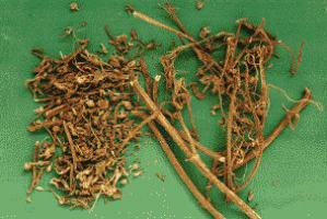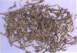 【標題】 墨旱蓮 【拼音】 Mohanlan 【概述】 為菊科植物鱧腸Eclipta prostrata L.的地上部分。主產于江蘇、江西、浙江等地。花開時采割,曬干,切段生用。 【性味歸經】 甘、酸,寒。歸肝、腎經。 【功效】 滋補肝腎,涼血止血。 【應用】 1.肝腎陰虛證。本品甘寒,能補益肝腎之陰,適用于肝腎陰虛或陰虛內熱所致須發早白、頭暈目眩、失眠多夢、腰膝酸軟、遺精耳鳴等證。單用或與滋養肝腎之品配伍。如旱蓮膏(《醫燈續焰》)單用本品熬膏服;二至丸(《醫方集解》)以之與女貞子同用;亦常與熟地、枸杞子等配伍。 2.陰虛血熱的失血證。本品長于補益肝腎之陰,又能涼血止血,故尤宜于陰虛血熱的出血證。可單用或與生地黃、阿膠等滋陰涼血止血之品同用。 【用法用量】 煎服,6~12g。 【臨床研究】 1.化學成分:本品含皂苷、鞣質、維生素A樣物質、鱧腸素、三噻嗯甲醇、三噻嗯甲醛、螃蜞菊內酯、去甲螃蜞菊內酯、去甲螃蜞菊內酯苷及煙堿等成分。 2.藥理作用:本品具有提高機體非特異性免疫功能,消除氧自由基以抑制5-脂氧酶,保護染色體,保肝,促進肝細胞的再生,增加冠狀動脈流量,延長小鼠在常壓缺氧下的生命,提高在減壓缺氧情況下小鼠的存活率,并有鎮靜、鎮痛、促進毛發生長、使頭發變黑、止血、抗菌、抗阿米巴原蟲、抗癌等作用。 3.臨床研究: 據報道,以墨旱蓮水煎口服,治療血小板減少癥53例,服藥平均53.5天后,血小板計數平均由5.6萬上升至13.14萬,臨床癥狀消失或基本消失(湖南中醫學院學報,1992,4:29);以墨旱蓮60~90g,水煎服,每日1劑;或用鮮品500g,涼開水洗凈,搗爛取汁,加冷開水100ml,分2次服,治療藥物引起的溶血患者11例,療效滿意(中成藥,1993,6:45);。 【參考文獻】 1.《新修本草》:“洪血不可止者,傅之立已。汁涂發眉,生速而繁”。 2.《本草正義》:“入腎補陰而生長毛發,又能入血,為涼血止血之品”。 【圖片】 墨旱蓮 ![]() 墨旱蓮藥材及飲片 藥材墨旱蓮 ![]() 藥材墨旱蓮表面觀 ![]() 鱧腸 ![]() 鱧腸《本草綱目》 ![]() (責任編輯:Doctor001) |