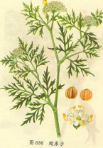 【標題】 蛇床子 【拼音】 Shechuangzi 【概述】 為傘形科植物蛇床Cnidium monnieri(L.)Cuss. 的成熟果實。全國各地均產,以河北、山東、浙江、江蘇、四川等地產量較大。均為野生,夏、秋二季果實成熟時采收,除去雜質,曬干。生用。 【性味歸經】 辛、苦,溫。有小毒。歸腎經。 【功效】 殺蟲止癢,燥濕,溫腎壯陽。 【應用】 1.陰部濕癢,濕疹,疥癬。本品辛苦溫燥,有殺蟲止癢,燥濕諸作用。為皮膚及婦科病常用藥,常與苦參、黃柏、白礬等配伍,且較多外用。治陰部瘙癢,與白礬煎湯頻洗,如《瀕湖集簡方》;現(xiàn)臨床治滴蟲性陰道炎較常用。《千金方》則單用本品研粉,豬脂調之外涂,治療疥癬瘙癢。 2.寒濕帶下,濕痹腰痛。本品性溫熱可助陽散寒,辛苦又具燥濕祛風之功。治帶下,腰痛尤宜于寒濕兼腎虛所致者,常與山藥、杜仲、牛膝等同用。 3.腎虛陽痿,宮冷不孕。本品溫腎壯陽之功亦佳。如《千金方》在30首治腎虛陽痿精冷方中,用蛇床子方達半數以上,且內服、外用均有。亦常配伍當歸、枸杞、淫羊藿、肉蓯蓉等治療陽痿無子,如贊育丹(《景岳全書》)。 【注意】 陰虛火旺或下焦有濕熱者不宜內服。 【用法用量】 外用適量,多煎湯熏洗或研末調敷。內服3~9g。 【臨床研究】 1.化學成分:果實含揮發(fā)油1.3%,已從油中分得27個成分。還含香豆精類等成分,如蛇床明素,花椒毒素等。 2.藥理作用:蛇床子能延長小鼠交尾期,增加子宮及卵巢重量;其提取物也有雄激素樣作用,可增加小鼠前列腺、精囊、提肛肌重量。對耐藥性金黃色葡萄球菌、綠膿桿菌及皮膚癬菌有抑制作用;可延長新城雞瘟病毒雞胚的生命;殺滅陰道滴蟲。所含的花椒毒酚有較強的抗炎和鎮(zhèn)痛作用。另外,還有抗心律失常,降低血壓,祛痰平喘,延緩衰老,促進記憶,局麻,抗誘變,抗骨質疏松,殺精子等作用。 3.臨床研究: 據報道,用蛇床子或經適當配伍治療急性滲出性皮膚病、疥瘡、黃水瘡、濕疹等多種疾病,療效滿意。近年還報道:如將蛇床子與蒼耳等制成“皮膚凈”針劑,每次肌注2ml,日2次,治療皮膚瘙癢癥607例,有效率83.6%(臨床皮膚科雜志,1983,1∶15);用蛇床子、冰醋酸、乙醇再加水制成的復方蛇床子洗劑外用,治療腳癬180例,有效率100%,(中藥材,1996,8∶427);每次服蛇床子總香豆素80mg,日3次,10日1療程,治療支氣管哮喘和喘息型支氣管炎發(fā)作期患者118例,有效率87.3%(中草藥,1988,9∶410)。此外,又可用治宮頸糜爛、陰道炎、女陰白色病變、慢性盆腔炎、不孕癥、周圍神經炎等疾病。 【參考文獻】 1.《神農本草經》:“主男子陰痿濕癢,婦人陰中腫痛,除痹氣,利關節(jié),癲癇,惡瘡。” 2.《藥性論》:“治男子、女人虛,濕痹,毒風,頑痛,去男子腰疼。浴男子陰,去風冷,大益陽事。主大風身癢,煎湯浴之瘥。療齒痛及小兒驚癇。” 【圖片】 藥材蛇床子 ![]() 藥材蛇床子分果橫切面 ![]() 蛇床 ![]() 蛇床子 ![]() 蛇床子《本草綱目》 ![]() 蛇床子植株花 ![]() (責任編輯:Doctor001) |