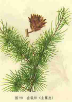 【標(biāo)題】 土荊皮 【拼音】 Tujingpi 【概述】 為松科植物金錢松Pseudolarix kaempferi Gord.的根皮或近根樹皮。主產(chǎn)于江蘇、浙江、安徽、江西等地。多為栽培。于立夏前后剝?nèi)。ルs質(zhì),曬干。生用。又名土槿皮。 【性味歸經(jīng)】 辛,溫。有毒。歸肺、脾經(jīng)。 【功效】 殺蟲,止癢。 【應(yīng)用】 1.體癬、手足癬、頭癬等多種癬病。有較好殺蟲療癬,祛濕止癢作用。以外用治癬為主,可單用浸酒涂擦或研末加醋調(diào)敷。現(xiàn)多制成10~50%土槿皮酊,或配合水楊酸、苯甲酸等制成復(fù)方土槿皮酊外用,如鵝掌風(fēng)藥水(《中國藥物大全》)。 2.濕疹,皮炎,皮膚瘙癢。可單用浸酒外擦,或配大黃、苦參、黃柏等同用。 【注意】 只供外用,不可內(nèi)服。 【用法用量】 外用適量,酒或醋浸涂擦,或研末調(diào)涂患處。 【臨床研究】 1.化學(xué)成分:根皮含土荊皮酸、β-谷甾醇、鞣質(zhì)、揮發(fā)油、多糖等。 2.藥理作用:其有機酸、乙醇浸膏及苯浸膏,對我國常見的10 種致病性皮膚真菌和白色念珠菌均有一定抗菌作用;其水浸液,體外無抗真菌作用。土荊皮酸能抗癌細(xì)胞,還能抗早孕,抑制卵子受精;尚可抗中孕,但抗著床作用不明顯。其提取物和制成的止血粉,實驗均有良好止血作用。 3.不良反應(yīng):土荊皮酸A給犬口服的中毒癥狀主要在消化系統(tǒng),對腸粘膜的損害隨劑量增大而加重,提示給藥時應(yīng)注意胃腸道反應(yīng)(生殖與避孕,1989,1∶34)。 【參考文獻(xiàn)】 《本草綱目拾遺》:“其皮治一切血,殺蟲瘴癬,合蘆薈香油調(diào)搽。” 【圖片】 土荊皮 ![]() 藥材土荊皮 金錢松 ![]() 金錢松《本草綱目》 ![]() (責(zé)任編輯:Doctor001) |