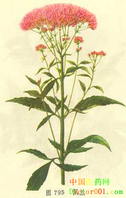 【標(biāo)題】 佩蘭 【拼音】 Peilan 【概述】 為菊科植物佩蘭Eupatorium fortunei Turcz. 的干燥地上部分。主產(chǎn)于江蘇、浙江、河北等地。夏、秋二季分兩次采割。切段生用,或鮮用。 【性味歸經(jīng)】 辛,平。歸脾、胃、肺經(jīng)。 【功效】 化濕,解暑。 【應(yīng)用】 1.濕阻中焦。本品氣味芳香,其化濕和中之功與藿香相似,治濕阻中焦之證,每相須為用,并配蒼術(shù)、厚樸、蔻仁等,以增強(qiáng)芳香化濕之功。又因其性平,芳香化濕濁,去陳腐,用治脾經(jīng)濕熱,口中甜膩、多涎、口臭等的脾癉癥,可單用煎湯服,如蘭草湯(《素問(wèn)》),或配伍黃芩、白芍、甘草等藥。 2.暑濕、濕溫。本品化濕又能解暑,治暑濕證常與藿香、荷葉、青蒿等同用。濕溫初起,可與滑石、薏苡仁、藿香等同用。 【用法用量】 煎服,5~10g。鮮品加倍。 【臨床研究】 1.化學(xué)成分:全草含揮發(fā)油0.5%~2%。油中含聚傘花素(對(duì)異丙基甲苯)、乙酸橙花醇酯,葉含香豆精、鄰香豆酸、麝香草氫醌。其它尚含有三萜類化合物。 2.藥理作用:佩蘭水煎劑,對(duì)白喉?xiàng)U菌、金黃色葡萄球菌、八疊球菌、變形桿菌、傷寒桿菌有抑制作用。其揮發(fā)油及油中所含的傘花烴、乙酸橙花酯對(duì)流感病毒有直接抑制作用。佩蘭揮發(fā)油及其有效單體對(duì)傘花烴灌胃具有明顯祛痰作用。 3.臨床研究: 據(jù)報(bào)道,以佩蘭配伍藿香、白術(shù)、扁豆、茯苓、杏仁、苡仁、滑石等,治療暑溫夾濕,傷及腸胃之腹瀉效果良好,2劑而愈(四川中醫(yī),1985,12:43)。 【參考文獻(xiàn)】 1.《神農(nóng)本草經(jīng)》:“主利水道,殺蠱毒,辟不洋。久服益氣,輕身不老,通神明。” 2、《本草經(jīng)疏》:“開(kāi)胃除惡,清肺消痰,散郁結(jié)。” 【圖片】 佩蘭 ![]() 佩蘭《本草綱目》 ![]() 佩蘭植株 ![]() 藥材佩蘭 ![]() 【表格】 佩蘭《中藥歌決》 【歌決】 佩蘭辛平歸入脾,健胃利尿祛痰宜; 頭痛鼻塞胸悶嘔,腰腹疼痛氣上逆; 胸悶腹痛嘔吐瀉,風(fēng)水腫毒穢惡氣。 (責(zé)任編輯:Doctor001) |