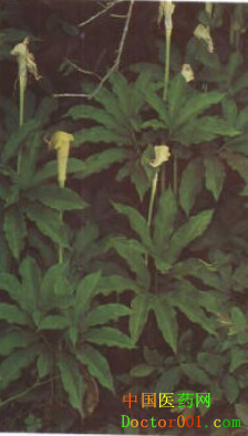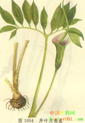 【標題】 天南星 【拼音】 Tiannanxing 【概述】 為天南星科植物天南星Arisaema erubcscens(Wall.)Schott、異葉天南星A. heterophyllum Bl.或東北天南星A.amurense Maxim.的塊莖。天南星主產于河南、河北、四川等地;異葉天南星主產于江蘇、浙江等地;東北天南星主產于遼寧、吉林等地。秋、冬二季采挖,除去須根及外皮,曬干,即生南星;用姜汁、明礬制過用,為制南星。 【性味歸經】 苦、辛,溫。有毒。歸肺、肝、脾經。 【功效】 燥濕化痰,祛風解痙;外用散結消腫。 【應用】 1.濕痰,寒痰證。本品性溫而燥,有較強的燥濕化痰之功。治濕痰阻肺,咳喘痰多,胸膈脹悶,常與半夏相須為用,并配枳實、橘紅,如導痰湯(《傳信適用方》);若配黃芩等,可用于熱痰咳嗽,如小黃丸(張潔古《素問病機氣宜保命集》)。 2.風痰眩暈、中風、癲癇、破傷風。本品歸肝經,走經絡,善祛風痰而止痙厥。治風痰眩暈,配半夏、天麻等;治風痰留滯經絡,半身不遂,手足頑麻,口眼喎斜等,則配半夏,川烏、白附子等,如青州白丸子(《和劑局方》);治破傷風角弓反張,痰涎壅盛,則配白附子、天麻、防風等,如玉真散(《外科正宗》)。治癲癇,可與半夏、全蝎、僵蠶等同用,如五癇丸(《楊氏家藏方》)。 3.癰疽腫痛,蛇蟲咬傷。本品外用能消腫散結止痛。治癰疽腫痛、痰核,可研末醋調敷;治毒蛇咬傷,可配雄黃外敷。 【注意】 陰虛燥痰及孕婦忌用。 【用法用量】 煎服,3~l0g,多制用。外用適量。 【成藥】 膽南星 【臨床研究】 1.化學成分:本品含三萜皂苷、安息香酸、氨基酸、D-甘露醇等。 2.藥理作用:煎劑具有祛痰及抗驚厥、鎮靜、鎮痛作用;水提取液對肉瘤S180、HCA(肝癌)實體型、子宮瘤U14有明顯抑制作用;生物堿氯仿部位能對抗烏頭堿所致的實驗性心律失常,并能延長心肌細胞動作電位的有效不應期。 3.臨床研究: 制南星為主配決明子、蠶蛹等制成片劑口服,治膽固醇升高者158例,甘油三酯升高者132例,β脂蛋白升高者116例。結果有效率分別為90.5%、90.5%、83.62%(中西醫結合雜志,1987,9:522);天南星、生蒲黃共為細末,醋調成餅,包涌泉穴,12小時易之,治療小兒多涎癥132例,痊愈118例,好轉11例,無效3例(四川中醫,1986,10:13);以天南星、三七、白附子等制成“強力消炎膠囊”口服,治急性牙齦炎、牙周膿腫等多種口腔病,總有效率為83.9%(中成藥研究,1986,6:21)。 4.不良反應:天南星對皮膚、粘膜均有強刺激性,人口嚼生天南星,可使舌、咽、口腔麻木和腫痛,出現粘膜糜爛,音啞、張口困難,甚至呼吸緩慢、窒息等。皮膚接觸可致過敏瘙癢,尚有報道長期使用天南星可引起智力發育障礙。誤服本品中毒者,可服稀醋、鞣酸或濃茶、蛋清等洗胃,或服鮮姜汁或鮮姜湯內服解毒?谇幻訝者,可用雙氧水和復方硼酸溶液漱口,并用龍膽紫涂口腔,必要時給以吸氧,或氣管切開。皮膚中毒時,可用水或稀醋、鞣酸洗滌。 【參考文獻】 1.《開寶本草》:“主中風,麻痹,除痰,下氣,破堅積,消癰腫,利胸膈,散血墮胎。” 2.《本草綱目》;“治驚癇,口眼喎斜,喉痹,口舌瘡糜,結核,解顱。” 3.《本經逢原》:“南星、半夏皆治痰藥也。然南星專走經絡,故中風、麻痹以之為導;半夏專走腸胃,故嘔吐、泄瀉以之為向導。” 【圖片】 東北天南星 ![]() 東北天南星《本草綱目》 ![]() 天南星 ![]() 天南星《中藥學》 ![]() 天南星《本草綱目》 ![]() 天南星植株 ![]() 天南星藥材及飲片 ![]() 異葉天南星 ![]() 異葉天南星《本草綱目》 ![]() 膽南星 ![]() 藥材天南星 ![]() (責任編輯:Doctor001) |