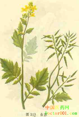 【標題】 白芥子 【拼音】 Baijiezi 【概述】 為十字花科植物白芥Sinapis alba L.的種子。主產于安徽、河南、四川等地。夏末秋初,果實成熟時割取全株,曬干后打下種子。生用或炒用。 【性味歸經】 辛,溫。歸肺、胃經。 【功效】 溫肺化痰,利氣,散結消腫。 【應用】 1.寒痰喘咳,懸飲。本品辛溫,能散肺寒,利氣機,通經絡,化寒痰,逐水飲。治寒痰壅肺,咳喘胸悶,痰多難咯,配蘇子、萊菔子,如三子養親湯(《韓氏醫通》);若懸飲咳喘胸滿脅痛者,可配甘遂、大戟等以豁痰逐飲,如控涎丹(《三因方》)。若冷哮日久,可配細辛、甘遂、麝香等研末,于夏令外敷肺俞、膏盲等穴,或以10%白芥子注射液在肺俞、膻中、定喘等穴行穴位注射。 2.陰疽流注,肢體麻木,關節腫痛。本品溫通經絡,善散“皮里膜外之痰”,又能消腫散結止痛。治痰濕流注所致的陰疽腫毒,常配鹿角膠、肉桂、熟地等藥,以溫陽化滯,消痰散結,如陽和湯(《外科全生集》);若治痰濕阻滯經絡之肢體麻木或關節腫痛,可配馬錢子、沒藥等,如白芥子散(《婦人大全良方》),亦可單用研末,醋調敷患處。 【注意】 本品辛溫走散,耗氣傷陰,久咳肺虛及陰虛火旺者忌用;消化道潰瘍、出血者及皮膚過敏者忌用。用量不宜過大。 【用法用量】 煎服,3~6g。外用適量,研末調敷,或作發泡用。 【臨床研究】 1.化學成分:本品含芥子油苷、內有白芥子苷。還含脂肪油、芥子堿、芥子酶及數種氨基酸。 2.藥理作用:小劑量能引起反射性氣管分泌增加,而有惡心性祛痰作用,白芥子苷水解后的產物白芥油有較強的刺激作用,可致皮膚充血、發泡。白芥子粉能使唾液分泌,淀粉酶活性增加,小量可刺激胃粘膜,增加胃液胰液的分泌,大量催吐;水浸劑對皮膚真菌有抑制作用。 3.臨床研究: 白芥子,溫水中泡軟攪拌成泥狀,外敷少腹膀胱脹滿部位,治產后尿潴留22例,均自行排尿(江蘇中醫,1990,2:36);另用白芥子配延胡索、甘遂、細辛等制粉,生姜汁調敷大椎、雙肺俞、雙膏盲、雙腎俞、膻中等穴,治變態反應性鼻炎60例,總有效率88.3%(中國中西醫結合雜志,1994,6:342);此外白芥子生用,還可用于甲狀腺炎、淋巴結炎、慢性深部膿腫,闌尾周圍膿腫等(新中醫,1990,11:35)。 4.不良反應:白芥子油對皮膚粘膜有刺激作用,能引起充血、灼痛,甚至發泡,內服過量可引起嘔吐、腹痛、腹瀉。 【參考文獻】 1.《本草綱目》:“利氣豁痰,除寒暖中,散腫止痛。治喘嗽反胃,痹木腳氣,筋骨腰節諸痛。” 2.《本草經疏》:“白芥子味極辛,氣溫。能搜剔內外痰結,及胸膈寒痰,冷涎壅塞者殊效。” 3.《藥品化義》:“白芥子……橫行甚捷,……通行甚銳,專開結痰,痰屬熱者能解,屬寒者能散。痰在皮里膜外,非此不達,在四肢兩脅,非此不通。若結胸證,痰涎邪熱固結胸中及咳嗽失音,以此同蘇子、枳實、瓜蔞、杏仁、芩連為解熱下痰湯,誠利氣寬胸神劑。” 【圖片】 白芥《中藥學》 ![]() 白芥《本草綱目》 ![]() 白芥子 ![]() 白芥子植株 ![]() (責任編輯:Doctor001) |