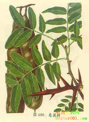 【標題】 皂莢 【拼音】 Zaojia 【概述】 為豆科植物皂莢Gleditsia sinensis Lam.的果實,又名皂角。形扁長者,稱大皂莢;其植株受傷后所結(jié)的小型果實,彎曲成月牙形,稱豬牙皂,又稱小皂莢,均入藥。主產(chǎn)于四川、河北、陜西、河南等地。秋季采摘成熟果實,曬干,切片生用,或炒用。 【性味歸經(jīng)】 辛、咸,溫。有小毒。歸肺、大腸經(jīng)。 【功效】 祛頑痰,通竅開閉,祛風殺蟲。 【應(yīng)用】 1.頑痰阻肺,咳喘痰多。本品辛能通利氣道,咸能軟化膠結(jié)之痰,故頑痰膠阻于肺見咳逆上氣,時吐稠痰,難以平臥者宜用之,可單味研末,以蜜為丸,棗湯送服,即《金匱要略》皂莢丸。近代有以本品配麻黃,豬膽汁制成片劑,治咳喘痰多者。 2.中風、痰厥、癲癇、喉痹痰盛。本品味辛而性竄,入鼻則嚏,入喉則吐,能開噤通竅,故如中風、痰厥、癲癇、喉痹等痰涎壅盛,關(guān)竅阻閉者可用之。若配細辛共研為散,吹鼻取嚏,即通關(guān)散(《丹溪心法附余》);或配明礬為散,溫水調(diào)服,涌吐痰涎,而達豁痰開竅醒神之效,即稀涎散(《傳家秘寶》)。 此外,本品熬膏外敷可治瘡腫未潰者,有散結(jié)消腫之效;以陳醋浸泡后研未調(diào)涂,可治皮癬,有祛風殺蟲止癢之功。又本品味辛,能“通肺及大腸氣”,而有通便作用,治便秘,可單用,也可配細辛研末,加蜂蜜調(diào)勻,制成栓劑用。 【注意】 內(nèi)服劑量不宜過大,以免引起嘔吐、腹瀉。辛散走竄之性強,非頑疾證實體壯者慎用。孕婦、氣虛陰虧及有出血傾向者忌用。 【用法用量】 研末服,1~1.5g;亦可入湯劑,1.5~5g。外用適量。 【成藥】 皂角刺 【臨床研究】 1.化學成分:本品含三萜類皂苷、鞣質(zhì)、蠟醇、廿九烷、豆甾醇等。 2.藥理作用:皂苷能刺激胃粘膜而反射性地促進呼吸道粘液的分泌,從而產(chǎn)生祛痰作用:煎劑對離體大鼠子宮有興奮作用;對堇色毛癬菌,星形奴卡氏菌有抑制作用。大量皂莢中所含之皂苷,不僅刺激胃腸粘膜,產(chǎn)生嘔吐、腹瀉,而且腐蝕胃粘膜,發(fā)生吸收中毒,甚至產(chǎn)生全身毒性,引起溶血,特別是影響中樞神經(jīng)系統(tǒng),先痙攣后麻痹,呼吸中樞麻痹而死亡。 3.臨床研究: 皂莢研細末吹入鼻腔,可止呃逆(中醫(yī)雜志,1995,7:389)、治療急性心悸(竇性心動過速、室上性心動過速)(中醫(yī)雜志,1995,7:418);皂莢蜜丸服,治痰稠不易咳出之肺結(jié)核、肺膿腫、肺心病、支氣管擴張、支氣管肺炎、支氣管炎及肺不張等呼吸系統(tǒng)疾病,有較好祛痰作用(中華內(nèi)科雜志,1982,12:783);皂莢研末,用糖拌服,治小兒厭食癥,總有效率94.5%(湖北中醫(yī)雜志,1987,1:25);大皂角炒,研末,入醋收膏,貼敷患側(cè)口角,治面神經(jīng)炎300例,痊愈250例,好轉(zhuǎn)40例,無效10例(陜西中醫(yī)學院學報,1995,4:25);皂莢與苦參煎水熏洗,治滴蟲性陰道炎68例,近期治愈39例,遠期治愈12例(甘肅中醫(yī),1996,3:36);皂莢用水、酒、醋、香油等制成浸出液或糊劑外搽或敷,可治療疥瘡(湖北中醫(yī)雜志,1989,5:32)、帶狀皰疹、足癬、漆瘡、丹毒、痱子(新中醫(yī),1995,1:45)。 4.不良反應(yīng):皂莢所含的皂莢苷有毒,對胃粘膜有強烈的刺激作用,胃粘膜被破壞而吸收中毒,故用量過大,誤食種子或豆莢,及注射用藥均可致毒性反應(yīng)。初感咽干、上腹飽脹及灼熱感,繼之惡心、嘔吐、煩躁不安,腹瀉,大便多呈水樣,帶泡沫。并有溶血現(xiàn)象,出現(xiàn)面色蒼白、黃疸、腰痛、血紅蛋白尿及缺氧癥狀等。同時出現(xiàn)頭痛、頭暈、全身衰弱無力及四肢酸麻等。嚴重者可出現(xiàn)脫水、休克、呼吸麻痹、腎衰而致死亡。 中毒早期應(yīng)立即催吐、洗胃、并口服牛乳、蛋清等以保護胃粘膜,必要時可導(dǎo)瀉;靜脈補液,維持水、電解質(zhì)及酸堿平衡,并促進毒素排泄;有溶血征象者,應(yīng)用碳酸氫鈉以堿化尿液,嚴重者輸血、給氧、酌用可的松類激素,如氫化可的松或地塞米松等;并作對癥處理。中藥解毒:以生姜9g、香芋9g、赤芍9g、烏藥9g、藿香6g、羌活6g、大腹皮12g,水煎服。或以黃柏9g,甘草6g,煎服。 【參考文獻】 1.《神農(nóng)本草經(jīng)》:“主風痹死肌,邪氣;風頭淚出,下水。利九竅。” 2.《本草綱目》;“通肺及大腸氣,治咽喉痹塞,痰氣喘咳,民癘濟癬。”“其味辛而性燥,氣浮而散。吹之異之,則通上下諸竅;服之則治風濕痰喘腫滿,殺蟲;涂之則散腫消毒,搜風治瘡。” 3.《本經(jīng)逢原》:“大小二皂,所治稍有不同,用治風痰,牙皂最勝,若治濕痰,大皂力優(yōu)。” 【圖片】 皂莢 ![]() 皂莢《中藥學》 ![]() 皂莢刺 ![]() 皂莢樹 ![]() 【表格】 皂莢《中藥歌決》 【歌決】 皂莢辛溫肺大腸,祛痰開竅軟堅良; 氣逆咳嗽痰壅塞,癲癇昏倒口難張。 (責任編輯:Doctor001) |