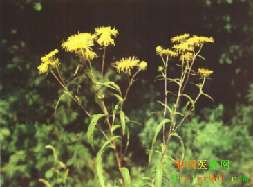 【標(biāo)題】 金沸草《中國藥典》 【名稱】 金沸草 【拼音】 Jinfeicao 【英文】 HERBA INULAE 【概述】 本品為菊科植物條葉旋覆花Inula linariifolia Turcz. 或旋覆花Inulajaponica Thunb. 的干燥地上部分。夏、秋二季采割,曬干。 【性味歸經(jīng)】 苦、辛、咸,溫。歸肺、大腸經(jīng)。 【應(yīng)用】 降氣,消痰,行水。用于風(fēng)寒咳嗽,痰飲蓄結(jié),痰壅氣逆,胸膈痞滿,喘咳痰多;外治疔瘡腫毒。 【貯藏】 置干燥處。 【用法用量】 4.5~9g。外用鮮品適量,搗汁涂患處。 【炮制】 除去雜質(zhì),略洗,切段,干燥。 【性狀】 條葉旋覆花 莖呈圓柱形,上部分枝,長(zhǎng)30~70cm,直徑0.2~0.5cm;表面綠褐色或棕褐色,疏被短柔毛,有多數(shù)細(xì)縱紋;質(zhì)脆,斷面黃白色,髓部中空。 葉互生,葉片條形或條狀披針形,長(zhǎng)5~10cm,寬0.5~1cm,先端尖,基部抱莖,全緣, 邊緣反卷,上表面近無毛,下表面被短柔毛。頭狀花序頂生,直徑0.5~1cm,冠毛白色, 長(zhǎng)約0.2cm。氣微,味微苦。 旋覆花 葉片橢圓狀披針形,寬1~2.5cm,邊緣不反卷。頭狀花序較大,直徑1~2cm,冠毛長(zhǎng)約0.5cm。 【圖片】 旋覆花 ![]() 條葉旋覆花 ![]() 藥材金沸草 ![]() 金沸草 ![]() 【錄自】 《中國藥典》 (責(zé)任編輯:Doctor001) |