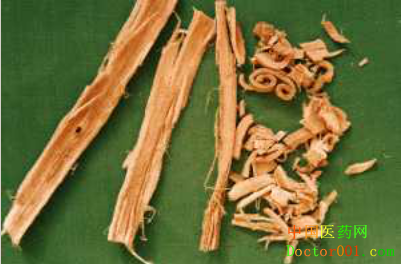 【標題】 桑白皮 【拼音】 Sangbaipi 【概述】 為桑科植物桑Morus alba L.的根皮。全國大部分地區均產,主產于安徽、河南、浙江、江蘇、湖南等地。秋末葉落時至次春發芽前挖根,刮去黃棕色粗皮,剝取根皮,曬干,切絲生用,或蜜炙用。 【性味歸經】 甘,寒。歸肺經。 【功效】 瀉肺平喘,利水消腫。 【應用】 1.肺熱咳喘。本品性甘寒性降,主入肺經,能清瀉肺火兼瀉肺中水氣而平喘。治肺熱咳喘,常配地骨皮同用,如瀉白散(《小兒藥證直訣》);若水飲停肺,脹滿喘急,可配麻黃、杏仁、葶藶子等宣肺逐飲之藥同用;治肺虛有熱而咳喘氣短、潮熱、盜汗者,也可與人參、五味子、熟地等補益藥配伍,如補肺湯(《永類鈐方》)。 2.水腫。本品能瀉降肺氣,通調水道而利水消腫,尤宜用于風水、皮水等陽水實證。全身水腫,面目肌膚浮腫,脹滿喘急,小便不利者,常配茯苓皮、大腹皮、陳皮等,如五皮散(《中藏經》)。 此外,本品還有清肝降壓止血之功,可治衄血、咯血及肝陽肝火偏旺之高血壓癥。 【用法用量】 煎服,5~15g。瀉肺利水,平肝清火宜生用;肺虛咳嗽宜蜜炙用。 【臨床研究】 1.化學成分:本品含多種黃酮類衍生物,如桑根皮素、桑皮色烯素,桑根皮素等;傘形花內酯,東莨菪素,還含有作用類似乙酰膽堿的降壓成分;近又提得桑皮呋哺A。 2.藥理作用:本品有輕度止咳作用,并能利尿,尿量及鈉、鉀、氯化物排出量均增加;煎劑及其乙醇、乙醚、甲醇的提取物,有不同程度的降壓作用;對神經系統有鎮靜、安定、抗驚厥、鎮痛、降溫作用;對腸和子宮有興奮作用。煎劑對金黃色葡萄球菌、傷寒桿菌、痢疾桿菌及抑制作用。本品對子宮頸癌JTC28、肺癌細胞有抑制作用,近年研究還表明,還能抗愛滋病毒。 3.臨床研究: 因本品有肯定的降血壓作用,有人用五皮飲加重桑白皮用量,治療高血壓危象(安徽中醫學院學報,1995,3:22);單用桑根白皮一味煎服,治小兒流涎21例,均治愈,隨訪1年未見復發(云南中醫雜志,1987,1:37);單用外敷治療臁瘡亦有效(四川中醫,1991,4:49) 【參考文獻】 1.《名醫別錄》:“去肺中水氣,唾血,熱渴,水腫腹臚脹,利水道。” 2.《藥性論》:“治肺氣喘滿,水氣浮腫,主傷絕,利水道,消水氣,虛勞客熱,頭痛,內補不足。” 3.《本草綱目》:“桑白皮,長于利小水,及實則瀉其子也。故肺中有水氣及肺火有余者宜之。” 【圖片】 桑樹的干燥根皮 ![]() 桑白皮 桑白皮/桑白皮絲/飲片 ![]() 藥材桑白皮 ![]() 藥材桑白皮橫切面 ![]() (責任編輯:Doctor001) |