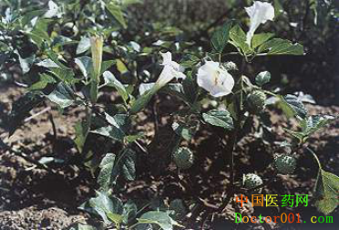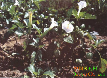 【標題】 洋金花 【拼音】 Yangjinhua 【概述】 為茄科植物白曼陀羅Darura metel L.的花。主產于江蘇、浙江、福建、廣東等地。7~9月花盛開時采收,曬干或低溫干燥。生用或姜汁、酒制用。 【性味歸經】 辛,溫。有毒。歸肺、肝經。 【功效】 平喘止咳,麻醉鎮痛,止痙。 【應用】 1.哮喘咳嗽。本品為麻醉鎮咳平喘藥,對成人或年老咳喘無痰或痰少,而他藥乏效者用之。可散劑單服,或配煙葉制成卷煙燃吸;現也常配入復方用治慢性喘息性支氣管炎,支氣管哮喘。 2.心腹疼痛,風濕痹痛,跌打損傷。本品有良好的麻醉止痛作用,可廣泛用于多種疼痛疾病。單用即有效,也可配川草烏,姜黃等同用。治痹痛,跌打疼痛,除煎湯內服外,還可煎水外洗或敷。 3.麻醉。本品自古就已用作麻醉藥,常與草烏、川烏、姜黃等同用,如整骨麻藥方(《醫宗金鑒》)。近代以本品為主,或單以本品提取物東莨菪堿制成中藥麻醉藥,廣泛用于各種外科手術麻醉,效果滿意。 4.癲癇,小兒慢驚風。本品有解痙止搐之功,可配全蝎、天麻、天南星等息風止痙藥同用以增強藥效。 【注意】 本品有毒,應控制劑量。外感及痰熱咳喘、青光眼、高血壓、心動過速者禁用;孕婦、體弱者慎用。 【用法用量】 內服,O.2~0.6g,宜入丸、散劑;作卷煙吸,一日量不超過1.5g。外用適量,煎湯洗或研末外敷。 【臨床研究】 1.化學成分:白曼陀羅花含莨菪烷型生物堿。其中主要包括東莨菪堿(天仙子堿)、莨菪堿(天仙子胺)、阿托品。 2.藥理作用:東莨菪堿對大腦皮層和皮層下某些部位主要是抑制作用,使意識喪失,產生麻醉。但對延髓和脊髓則有不同程度的興奮作用;有一定的鎮痛作用。對支氣管及胃腸平滑肌有松弛作用。有阿托品樣解除血管痙攣,改善微循環及組織器官的血流灌注而有抗休克作用。有散瞳,調節眼麻痹及抑制腺體分泌的作用。洋金花生物堿能明顯提高血液和大腦皮質超氧化物岐化酶(SOD)活性,降低丙二醛(MDA)含量。生物堿小劑量時,興奮迷走神經中樞使心率減慢;劑量較大時,則阻滯心臟M膽堿受體,使心率加快。較高濃度的莨菪類具有抗心律失常作用和非特異性的鈣通道阻滯作用。 3.臨床研究: 止喘靈注射液(主要成分為洋金花和麻黃),肌注配伍抗生素治嬰幼兒哮喘,總有效率達96.7%,明顯高于氨茶堿口服對照組(溫州醫學院學報,1993,4:239);用花仙子膠囊(洋金花、制馬錢子、花旗參、仙靈脾),早晚服,治強直性脊柱炎,總有效率達92.7%,療效優于消炎痛(廣西醫學,1994,2:156);洋金花注射液,每晚睡前肌注,治療5例變態反應性亞敗血癥,均痊愈。(新中醫,1988,11:35);用含有洋金花總堿的中藥穴位貼膜(暈嘔寧)防治運動病眩暈102例,總有效率為83.23%。對美尼爾氏綜合征眩暈和放化療所致的嘔吐亦有一定的緩解作用(北京中醫學院學報,1993,6:40); 4.不良反應:食用過量多致中毒,小兒較為多見。中毒癥狀和體征可歸納為兩類:一類為副交感神經功能阻斷癥狀,包括口干、惡心嘔吐、皮膚潮紅、心率、呼吸增快、瞳孔散大、視物模糊等;二類以中樞神經系統癥狀為主:步態不穩、嗜睡、意識模糊、譫妄、大小便失禁、狂躁不安甚至抽搐、生理反射亢進等,個別病人可出現發熱、白細胞升高、中性粒細胞增加。嚴重者可因呼吸中樞麻痹而死亡。解毒措施:4~6小時以內者,以清水或1:5000~1:2000高錳酸鉀溶液洗胃。超過4小時者,則應以硫酸鎂導瀉,并配合葡萄糖注射液靜脈滴注,無尿者可靜脈注射20%甘露醇250ml或給速尿40~80mg。拮抗劑可用毛果蕓香堿或毒扁豆堿,或用抗膽堿酯酶藥新斯的明。此外,須進行對癥處理及抗生素預防感染,并采取保溫措施。中藥解救可用甘草30g,綠豆60g,煎湯頻服;或用綠豆120g,銀花60g,連翹30g,甘草15g 煎水服。亦可用防風,桂枝煎湯服。 【參考文獻】 1.《履巉巖本草》:“治寒濕腳,面上破,生瘡,曬干為末,用少許貼患處。” 2.《本草綱目》:“諸風及寒濕腳氣,煎湯洗之;又主驚癇及脫肛;并入麻藥。” 3.《本草便讀》:“止瘡瘍疼痛,宣痹著寒哮。” 【附注】 本品的葉與種子均有止痛作用,均以東莨菪堿為主要成分。同屬植物毛曼陀羅D.innoxia Mill.、紫曼陀羅D.tatula L.、歐曼陀羅D.stramonium L.等,均與本品同功。 【圖片】 洋金花 ![]() 洋金花藥材 ![]() 白花曼陀羅 ![]() 白花蔓陀羅 ![]() 白蔓陀羅 ![]() 藥材洋金花 ![]() (責任編輯:Doctor001) |