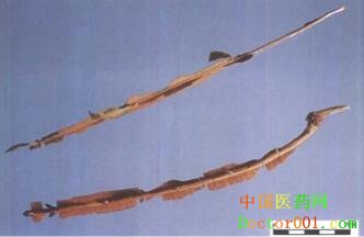 【標(biāo)題】 鬼箭羽 【拉丁文】 Ramulus Euonymi Alati 【異名】 衛(wèi)矛、鬼簡(《本經(jīng)》),六月凌(《植物名實(shí)圖考》),四面鋒、蓖萁柴(《浙江中藥手冊》),四棱樹(《中國藥用植物志》),山雞條子(《東北藥用植物志》),四面戟(《藥材學(xué)》),見腫消(江蘇),麻藥(廣東)。原植物衛(wèi)矛又名:鬼見愁(《中國樹木學(xué)》),千層皮、四棱茶(《遼寧經(jīng)濟(jì)植物志》),山扁榆(河北),鬼篦子(江蘇),四方柴(浙江),篦梳風(fēng)(湖南),四棱棒(四川)。 【性味歸經(jīng)】 味苦、辛,性寒。歸肝、脾經(jīng)。 【功效】 破血通經(jīng),解毒消腫,殺蟲。 【藥用】 為衛(wèi)矛科植物衛(wèi)矛 Euonymus alatus (Thunb.)Sieb. 的具翅狀物枝條或翅狀附屬物。 【應(yīng)用】 用于經(jīng)閉,癥瘕,痛經(jīng),產(chǎn)后瘀阻腹痛,瘀滯崩中,跌打傷痛,疝氣痛,關(guān)節(jié)痛。鬼箭羽苦辛行散入血,既善破瘀散結(jié),又善活血消腫止痛,藥力較強(qiáng),凡瘀血阻滯之證,旨可酌選。治經(jīng)閉、癥瘕、痛經(jīng)、產(chǎn)后瘀阻腹痛,常配當(dāng)歸、紅花、益母草等藥,以增強(qiáng)活血化瘀之力,方如《局方》當(dāng)歸散、《圣惠方》鬼箭羽散;治崩中下血,可配三七、蒲黃、茜草等藥,以增強(qiáng)化瘀止血之功;治跌打傷痛,可配大黃、紅花、赤芍等藥,以增強(qiáng)化瘀消腫止痛之效;治疝氣痛,可配川楝子、延胡索、荔枝核等藥,以增強(qiáng)疏肝理氣止痛之功;治關(guān)節(jié)痛,常配羌活、獨(dú)活、牛膝等藥,以共奏祛風(fēng)濕、通經(jīng)絡(luò)、止疼痛之功。 用于蟲積腹痛。鬼箭羽既能止痛,又能殺蟲,古云其能治蟲積腹痛,可配苦楝皮、檳榔、南瓜子等藥,以增強(qiáng)殺蟲之力。 用于瘡腫,毒蛇咬傷。鬼箭羽既能化瘀消腫,又能解毒殺蟲,常用于風(fēng)邪、熱毒、蟲毒漫淫肌膚諸疾。冶瘡腫,可配蒲公英、地丁草、金銀花等藥,以增強(qiáng)解毒之力;治疹毒瘙癢,可配白蒺藜、地膚子、蛇床子等,共奏祛風(fēng)解毒止癢之功;治毒蛇咬傷,可配半邊蓮、蚤休、徐長卿等藥,以增強(qiáng)解毒之力。 【注意】 孕婦、氣虛崩漏者禁服。 【用法用量】 4.00 - 9.00 g 【形態(tài)】 落葉灌木,植株光滑無毛,高2~3m。多分枝。小枝通常四棱形,棱上常具木栓質(zhì)扁條狀翅,翅寬約1cm或更寬。單葉對生,葉柄極短;葉片薄,稍膜質(zhì),倒卵形、橢圓形至寬披針形,長2~6cm,寬1.5~3.5cm,先端短漸尖或漸尖,邊緣有細(xì)鋸齒,基部楔形或?qū)捫ㄐ危砻嫔罹G色,背面淡綠色。聚傘花序腋生,有花3~9朵,花小,兩性,淡黃綠色,徑約3mm;萼4淺裂,裂片半圓形,邊緣有個(gè)整齊的毛狀齒;花辨4,近圓形,邊緣有時(shí)呈微波狀;雄蕊4,花紋短,著生于肥厚方形的花盤上,花盤與子房合生。蒴果橢圓形,綠色或紫色,1~3室,分離。種子橢圓形或卵形,淡褐色,外被橘紅色假種皮。花期5~6月,果期9~10月。 生于山野。分布于東北及河、陜西、甘肅、山東、江蘇、安徽、浙江、湖北、湖南、四川、貴州、云南等地。 【產(chǎn)地】 主產(chǎn)于湖北、河北、浙江、安徽、山東;以湖北、河北、浙江產(chǎn)量入。陜西、貴州亦產(chǎn)。湖北、河北等地所產(chǎn)者均系帶木質(zhì)翅的嫩枝,銷東北華北、西北、中南等地。華東等部分地區(qū)僅用翅狀物。 【品種考證】 鬼箭羽以衛(wèi)矛之名始載于《本經(jīng)》,列為中品。陶弘景云:“其莖有三羽。”《綱目》謂:“鬼箭生山石間,小株成叢,春長嫩條,條上四面有羽如箭羽,視之若三羽爾。青葉,狀似野茶,對生,味酸澀。三、四月開碎花,黃綠色。結(jié)實(shí)大加冬青子。”按其所述及附圖應(yīng)為本種。《植物名實(shí)圖考》收入木類,載:“衛(wèi)矛,即鬼箭羽。湖南俚醫(yī)謂之六月凌,用治腫毒。”所附之圖亦似本種。 【藥理作用】 1 調(diào)節(jié)血脂作用 曳箭羽水煎液3.6g/〔kg?d〕灌胃,共60d,對喂高膽固醇飼科的日本鶴鶉具有一定的調(diào)節(jié)血脂作用,能降低高密度脂蛋白,膽固酵和血漿總膽固醇(TC),升高HSL2-c,使HSL2-c/HSL3-c比值升高,增加卵磷脂 膽固醇酰速轉(zhuǎn)移隨(LCAT)活力,從而調(diào)節(jié)脂質(zhì)代謝和減輕動(dòng)脈粥樣破化(AS)病變程度。 2 降血糖作用 本品煎劑提得的草酰乙酸鈉對正常或四氧嘧啶性糖尿病的家兔有降低血糖、尿糖及增加體重作用。對正常麻醉犬,靜脈點(diǎn)滴能引起低血糖及胰島細(xì)胞蹭殖,胰島細(xì)胞增生。同時(shí)有細(xì)胞之萎縮、說明草酰乙酸鈉能刺激細(xì)胞,調(diào)整不正常的代謝過程,加強(qiáng)胰島素的分泌,每日給糖尿病患者口服100—1000mg,有降血糖作用。 【采收加工】 全年均可采,割取枝條后,取其嫩枝,曬干。或收集共翅狀物,曬干。 【炮制】 取原藥材,除去雜質(zhì),洗凈,潤透,切段或厚片,干燥。 貯干燥容器內(nèi),置通風(fēng)干燥處。 【附方】 1.治腹內(nèi)包塊 衛(wèi)矛6g,赤芍9g,紅花9g,赤木3g。水煎服。(《遼寧常用中草藥手冊》) 2.治經(jīng)閉,瘀血腹痛 鬼箭羽9g,丹參15g,赤芍12g,益母草30g,香附9g。水煎服。(《山東中草藥手冊》) 3.治月經(jīng)不調(diào) 衛(wèi)矛莖枝15g。水煎,兌紅糖服。(《湖南藥物志》) 4.治血崩 衛(wèi)矛10g,當(dāng)歸10g,甘草10g。水煎,口服2次。(《東北藥用植物》) 5.治產(chǎn)后敗血不散,兒枕塊硬,疼痛發(fā)歇,及新產(chǎn)乘虛,風(fēng)寒內(nèi)搏,惡露不快,臍腹堅(jiān)痛 紅藍(lán
