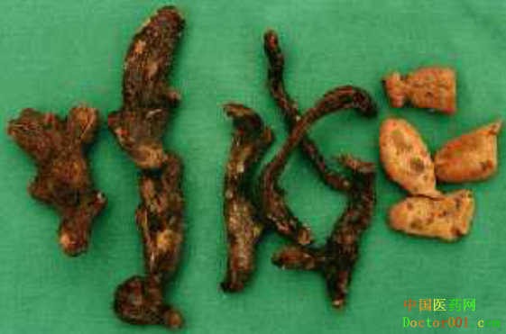 【標題】 骨碎補 【拼音】 Gusuibu 【概述】 為水龍骨科植物槲蕨Drynaria fortunei(Kunze)J.SM.或中華槲蕨D.baronii(Chrise)的根莖。前者產于浙江、湖北、廣東、廣西、四川;后者主產于陜西、甘肅、青海、四川等。全年均可采挖,以冬春兩季為主。除去葉及鱗片,洗凈,潤透,切片,干燥。生用或砂燙用。 【性味歸經】 苦,溫。歸肝、腎經。 【功效】 活血續傷,補腎強骨。 1.跌打損傷或創傷,筋骨損傷,瘀滯腫痛。本品能活血散瘀、消腫止痛、續筋接骨。以其入腎治骨,能治骨傷碎而得名,為傷科要藥。治跌撲損傷,可單用本品浸酒服,并外敷,亦可水煎服;或配伍沒藥、自然銅等,如骨碎補散(《圣惠方》)。 2.腎虛腰痛腳弱,耳鳴耳聾,牙痛,久泄。本品苦溫入腎,能溫補腎陽,強筋健骨,可治腎虛之證。治腎虛腰痛腳弱,配補骨脂、牛膝,如神效方(《圣惠方》);治腎虛耳鳴、耳聾、牙痛,配熟地、山茱萸等;治腎虛久瀉,既可單用,如《本草綱目》以本品研末,入豬腎中 【注意】 陰虛火旺,血虛風燥慎用。 【用法用量】 煎服,10~15g。外用適量,研末調敷或鮮品搗敷,亦可浸酒擦患處。 【臨床研究】 1.化學成分:含有柚皮苷、骨碎補雙氫黃酮苷、骨碎補酸等。 2.藥理作用:水煎醇沉液有預防血清膽固醇、甘油三脂升高、并防止主動脈粥樣硬化斑塊形成的作用;骨碎補多糖和骨碎補雙氫黃酮苷夠降血脂和抗動脈硬化的作用。骨碎補能促進骨對鈣的吸收,提高血鈣和血磷水平,有利于骨折的愈合;改善軟骨細胞,推遲骨細胞的退行性病變。此外,骨碎補雙氫黃酮苷有明顯的鎮靜、鎮痛作用。 3.臨床研究: 報道用骨碎補治療傳染性軟疣。以70%乙醇浸泡骨碎補,48小時后洗濾,涂于疣體上,每日2次,治療27例軟疣,16例治愈,8例好轉,無效3例,總有效率88.9%(陜西中醫,1986,7(10):460)。也有用骨碎補治療鏈霉素副反應的報道:每日用骨碎補30g,菊花12g,鉤藤12g,治療53例,有效率98.1%(新中醫,1986,(11):30)。 此外,骨碎補外用治療尋常疣和雞眼。 4.不良反應:大劑量煎服會引起中毒,主要表現為口干、多語、恐懼感、心悸胸悶,繼則神志恍惚、胡言亂語、時而欣快,時而悲泣(中草藥不良反應及防治。 【參考文獻】 1.《藥性論》:“主骨中疼痛,風血毒氣,五勞六極,口手不收,上熱下冷,悉能主之。” 2.《開寶本草》:“主破血,止血,補傷折。” 2.《本草綱目》:“治耳鳴及腎虛久瀉,牙痛。” 【圖片】 槲蕨 ![]() 槲蕨《中藥學》 ![]() 槲蕨《本草綱目》 ![]() 藥材骨碎補 ![]() 藥材骨碎補B ![]() 骨碎補 ![]() 骨碎補植株 ![]() 骨碎補藥材 ![]() (責任編輯:Doctor001) |