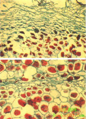 【標題】 郁金 【拼音】 Yujin 【概述】 為姜科植物溫郁金Curcuma wenyujin Y.H.Chen et C.Ling、姜黃C.longa L.、廣西莪術(shù)C.kwangsiensis S.Lee et C.F.Liang或蓬莪術(shù)C.phaeocaulis Val.的塊根。溫郁金主產(chǎn)于浙江,以溫州地區(qū)最有名,為道地藥材;黃郁金(植物郁金)及綠絲郁金(蓬莪術(shù))主產(chǎn)于四川;廣西莪術(shù)主產(chǎn)于廣西。野生或栽培。冬季莖葉枯萎后采挖,摘取塊根,除去細根,蒸或煮至透心,干燥。切片或打碎,生用,或礬水炙用。 【性味歸經(jīng)】 辛、苦,寒。歸肝、膽、心經(jīng)。 【功效】 活血止痛,行氣解郁,清心涼血,利膽退黃。 【應(yīng)用】 1.氣滯血瘀之胸、脅、腹痛。本品味辛能行能散,既能活血,又能行氣,故治氣血瘀滯之痛證。常與木香配伍,氣郁倍木香,血瘀倍郁金,如顛倒木金散(《醫(yī)宗金鑒》);若治肝郁氣滯之胸脅刺痛,可配柴胡、白芍、香附等藥用。若治心血瘀阻之胸痹心痛,可配瓜蔞、薤白、丹參等藥用;若治肝郁有熱、氣滯血瘀之痛經(jīng)、乳房作脹,常配柴胡、梔子、當歸、川芎等藥,如宣郁通經(jīng)湯(《傅青主女科》);若治癥瘕痞塊,可配鱉甲、莪術(shù)、丹參、青皮等。 2.熱病神昏,癲癇痰閉。郁金辛散苦泄,能解郁開竅,且性寒入心經(jīng),能清心熱,故可用于痰濁蒙蔽心竅、熱陷心包之神昏,可配伍石菖蒲、梔子,如菖蒲郁金湯(《溫病全書》);治癲癇痰閉之證,可配伍白礬以化痰開竅,如白金丸(《攝生眾妙方》)。 3.吐血、衄血、倒經(jīng)、尿血、血淋。郁金性寒清熱,味苦能降泄,入肝經(jīng)血分而能涼血降氣止血,用于氣火上逆之吐血、衄血、倒經(jīng),可配生地、丹皮、梔子等以清熱涼血,解郁降火,如生地黃湯(《醫(yī)學(xué)心悟》);用于熱結(jié)下焦,傷及血絡(luò)之尿血、血淋,可與生地、小薊等藥同用,如郁金散(《普濟方》)。 4.肝膽濕熱黃疸、膽石癥。郁金性寒入肝膽經(jīng),能清利肝膽濕熱,可治濕熱黃疸,配茵陳蒿、梔子;配伍金錢草可治膽石癥。 【注意】 畏丁香。 【用法用量】 煎服,5~12g;研末服,2~5g。 【臨床研究】 1.化學(xué)成分:含有揮發(fā)油(莰烯、樟腦、倍半萜烯等)、姜黃素、姜黃酮等。另含淀粉、多糖、脂肪油、橡膠、水芹烯等。 2.藥理作用:郁金有保護肝細胞、促進肝細胞再生、去脂和抑制肝細胞纖維化的作用,能對抗肝臟毒性病變。姜黃素和揮發(fā)油能促進膽汁分泌和排泄,減少尿內(nèi)鳥膽元;煎劑能刺激胃酸及十二指腸液分泌。水煎劑能降低全血粘度,抑制血小板聚集,醇提物能降低血漿纖維蛋白含量。水煎劑、揮發(fā)油對多種皮膚真菌有抑制作用,郁金對多種細菌有抑制作用,尤其對革蘭氏陰性菌的作用強于對革蘭氏陽性菌。郁金也有一定的抗炎止痛作用。此外郁金還有抗早孕的作用。 3.臨床研究: 用金蒲丹(郁金、石菖蒲、丹參各40g,香附20g),制成片劑,每片含生藥2.8g,口服,每次1~25片,日2次,配小劑量抗精神病西藥,6周為1療程,治療精神分裂癥204例。結(jié)果治愈64例,顯著進步70例,進步49例,無效21例,且副作用少(中西醫(yī)結(jié)合雜志,1987,7(9):529)。川郁金粉(或片),每次5~10g,日服3次,如無不適反應(yīng)加量至10~15g,日服3次,3個月為1療程,治療室性早搏52例,結(jié)果:基本治愈14例,顯效11例,好轉(zhuǎn)9例,;無效18例,。總有效率為65%(北京中醫(yī),1984,(3):18)。用白金丸(郁金與明礬按7:1的比例,加50%蜜水制丸),每次服6g,飯后服用,每日2~3次,20天為1療程,治療高脂血癥344例。結(jié)果膽固醇有82.8%降低,甘油三脂71.2%降低(江西中醫(yī)藥,1981,(1):1)。另有用郁金傳染性肝炎、血管神經(jīng)性頭痛、肝血管瘤、膽囊炎、膽石癥和急性乳腺炎等。 【參考文獻】 1.《本草綱目》:“治血氣心腹痛,產(chǎn)后敗血沖心欲死,失心癲狂。” 2.《本草匯言》:“郁金清氣化壇散瘀血之藥也,其性輕揚,能散郁滯,順逆氣,上達高巔,善行下焦,為心肺肝胃,氣血火痰郁遏不行者最驗。故治胸胃膈痛,兩脅脹滿,肚腹攻疼,飲食不思等證;又治經(jīng)脈逆行,吐血衄血,唾血血腥。此藥能降氣,氣降則火降,而痰與血亦各循其安所之處而歸原矣。” 3.《本草備要》:“行氣,解郁,泄血,破瘀。涼心熱,散肝郁,治婦人經(jīng)脈逆行。“ 【圖片】 廣西莪術(shù) ![]() 溫郁金 ![]() 藥材郁金 ![]() 藥材郁金橫切面 ![]() 蓬莪術(shù) ![]() 郁金 ![]() 郁金《本草綱目》 ![]() 郁金全株 ![]() 黃郁金 ![]() 黃郁金《常用中藥》 ![]() 【表格】 郁金《中藥歌決》 【歌決】 郁金苦寒心肺肝,健胃鎮(zhèn)痛利肝膽; 血淋痛經(jīng)胃潰瘍,膽囊結(jié)石肝臟炎。 (責(zé)任編輯:Doctor001) |
