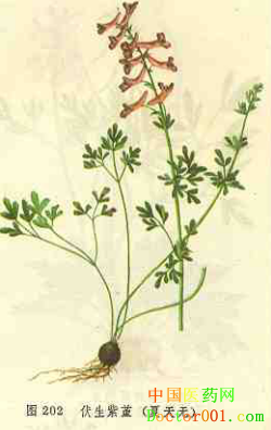 【標題】 夏天無 【拼音】 Xiatianwu 【概述】 為罌粟科植物伏生紫堇Corydalis decumbens(Thunb.)Pres.的塊莖。主產于河南、江蘇、安徽、浙江、江西、福建、臺灣、湖南、湖北等地。每年4月上旬至5月初待莖葉變黃時,在晴天挖掘塊根莖,除去須根,洗凈泥土,鮮用或曬干。 【性味歸經】 苦、微辛,溫。歸肝經。 【功效】 活血止痛,舒筋通絡,祛風除濕。 【應用】 1.中風半身不遂、跌仆損傷及肝陽頭痛。本品既能活血行血,又能舒筋通絡,且有一定的平抑肝陽的作用,用于治療中風偏癱,手足不遂及肝陽上亢引起的頭痛、頭暈,常與夏枯草、鉤藤、桑寄生,地龍等藥同用。用于跌仆損傷,瘀腫疼痛,既可單用,也可配伍雞血藤、乳香、沒藥等藥同用。 2.風濕痹痛,關節(jié)拘攣不利。本品既能舒筋通絡,又能祛風除濕,用于風濕痹痛,關節(jié)拘攣不利,可與當歸、羌活、獨活、威靈仙等藥同用。 【用法用量】 煎服,5~15g。或研末服,1~3g。亦可制成丸劑使用。 【臨床研究】 1.化學成分:含延胡索乙素、原阿片堿、空褐鱗堿、藤荷包牡丹定堿等多種生物堿。 2.藥理作用:具有鎮(zhèn)痛和鎮(zhèn)靜作用;能增加冠脈流量,擴張外周血管,降低血壓;能抑制血小板聚集,對抗血栓形成;對子宮平滑肌和腸平滑肌具有松弛和解痙作用。 3.臨床研究: 用夏天無針劑及片劑治療200例患者,其中風濕性關節(jié)炎76例,坐骨神經痛55例,類風濕性關節(jié)炎7例,高血壓8例,腦血管意外5例,其他病例49例。結果痊愈113例,顯效57例,好轉27例,無效3例(福建醫(yī)藥雜志,1979,(4):63)。用夏天無制成眼藥水(每1ml含生藥1g)治療青少年近視眼,在1小時內,每隔15分鐘滴眼1次,連續(xù)滴眼4次后,檢查視力變化。若視力未達到1.0,則在第2,3日繼續(xù)按上法治療,共觀察188人347只眼,治愈232只眼,治愈率66.9%,有效率97.7%(中草藥通訊,1976,(11):37)。 【參考文獻】 1.《浙江民間常用草藥》:“行血,活血,止血,止痛,鎮(zhèn)痙。” 2.《全國中草藥匯編》:“祛風濕,降血壓。主治風濕性關節(jié)炎、腰肌勞損,高血壓病,腦血管意外引起偏癱。” 【圖片】 伏生紫堇 ![]() 伏生紫堇《本草綱目》 ![]() 夏天無 ![]() 藥材夏天無 ![]() (責任編輯:Doctor001) |