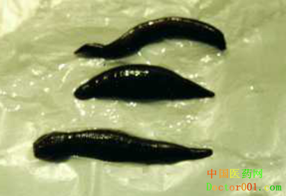 【標題】 水蛭 【拼音】 Shuizhi 【概述】 為水蛭科動物螞蟥Whitemania pigra Whitman、水蛭Hirudo nipponia Whitman及柳葉螞蟥W.acranulata Whitman的干燥體。全國大部分地區均有出產,多屬野生.夏秋季捕捉。捕捉后洗凈,用沸水燙死,切段曬干或低溫干燥,生用,或用滑石粉燙后用。 【性味歸經】 咸、苦,平。有小毒。歸肝經。 【功效】 破血通經,逐瘀消癥 【應用】 1.血瘀經閉,癥瘕積聚。本品咸苦入血,破血逐瘀力強,主要用于血滯經閉,癥瘕積聚等證。常與虻蟲相須為用,也常配三棱、莪術、桃仁、紅花等藥用,如抵當湯(《傷寒論》);若兼體虛者,可配人參、當歸等補益氣血藥,如化癥回生丹(《溫病條辨》)。 2.跌打損傷,心腹疼痛。取本品的破血逐瘀之功,亦常用于跌打損傷,可配蘇木、自然銅等藥用,如接骨火龍丹(《普濟方》)。治瘀血內阻,心腹疼痛,大便不通,則配伍大黃、牽牛子,如奪命散(《濟生方》)。 【注意】 孕婦及月經過多者忌用。 【用法用量】 煎服,1.5~3g;研末服,0.3—0.5g。以入丸、散或研末服為宜。或以鮮活者放置于瘀腫局部吸血消瘀。 【臨床研究】 1.化學成分:主要含蛋白質。唾液中含有水蛭素,還含有肝素、抗血栓素及組織胺樣物質。 2.藥理作用:水蛭水煎劑有強抗凝血作用,能顯著延長纖維蛋白的凝聚時間,水蛭提取物、水蛭素對血小板聚集有明顯的抑制作用,抑制大鼠體內血栓形成,對彌漫性血管內凝血有很好的治療作用。水蛭煎劑能改善血液流變學。能降血脂,消退動脈粥樣硬化斑塊,增加心肌營養性血流量,對抗垂體后葉素引起的心率失常或明顯的T波、ST段的變化。促進腦血腫吸收,減輕周圍腦組織炎癥反應及水腫,緩解顱內壓升高,改善局部血循環,保護腦組織免遭破壞。對皮下血腫也有明顯抑制作用。水蛭水煎劑對腎缺血有明顯保護作用,能降低血清尿素氮、肌酐水平,對升高的血清腫瘤壞死因子有明顯的降低作用。水蛭素對腫瘤細胞也有抑制作用。此外,水蛭水煎劑尚有終止妊娠的作用。 3.臨床研究: 水蛭片(每片含生藥0.75g),每次2—4片,日3次,治療冠心病、心絞痛100例。結果:顯效34例,改善56例,無效9例,惡化1例。其中心電圖恢復正常15例,改善44例,無效37例(天津醫藥,1980,(4):238)。生水蛭粉裝膠囊(每粒含生藥0.25g )治療高脂血癥150例,每次4粒,日3次,飯后服,4周為1療程。結果血清膽固醇平均由5.398±1.084mmol/L降為 4.953±0.923mmol/L(p 4.不良反應:妊娠7—11日小鼠每日灌服水蛭煎劑0.5、1.0g/kg,均可使胎鼠體重下降,有明顯致崎作用,死胎和吸收胎比例升高,墮胎作用顯著。 【參考文獻】 1.《神農本草經》:”主逐惡血,瘀血,月閉,破血逐瘀,無子,利水道。” 2.《別錄》:“墮胎。” 3.《本草衍義》:“治折傷。” 【圖片】 水蛭 ![]() 水蛭《常用中藥》 ![]() 水蛭《本草圖苑》 ![]() 水蛭藥材/水蛭絲 ![]() 藥材水蛭(柳葉螞蟥) ![]() 藥材水蛭(水蛭) ![]() 藥材水蛭(螞蟥) ![]() 螞蟥 ![]() 螞蟥《中藥學》 ![]() 【表格】 水蛭《中藥歌決》 【歌決】 水蛭咸平歸肝膀,活血通經療折傷; 癥瘕積聚月經閉,跌打損傷服安康。 (責任編輯:Doctor001) |