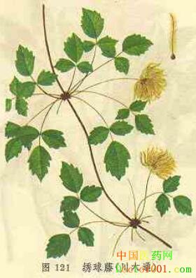 【標(biāo)題】 川木通《中國(guó)藥典》 【名稱】 川木通 【拼音】 Chuanmutong 【英文】 CAULIS CLEMATIDIS ARMANDII 【概述】 本品為毛茛科植物小木通Clematis armandii Franch. 或繡球藤Clematis montana Buch.-Ham.的干燥藤莖。春、秋二季采收,除去粗皮,曬干,或趁鮮切薄片,曬 干。 【性味歸經(jīng)】 淡、苦,寒。歸心、肺、小腸、膀胱經(jīng)。 【應(yīng)用】 清熱利尿,通經(jīng)下乳。用于水腫、淋病,小便不通,關(guān)節(jié)痹痛,經(jīng)閉乳少。 【貯藏】 置通風(fēng)干燥處,防潮。 【用法用量】 3~6g。 【理化鑒別】 取本品粗粉25g,加水250ml,煎煮30分鐘,濾過(guò),濾液濃縮至50ml,放冷,加水飽和的正丁醇振搖提取2次(50ml、25ml),合并正丁醇液,加2%氫氧化鈉溶液洗滌5 次,每次30ml,正丁醇液加水洗滌至中性,取正丁醇液蒸干,殘?jiān)右掖?5ml使溶解,加 鹽酸2ml,回流1小時(shí),蒸干,殘?jiān)铀?0ml,攪勻,加水飽和的醋酸乙酯提取2次,每次10 ml,合并醋酸乙酯提取液,蒸干,殘?jiān)蛹状?ml溶解,作為供試品溶液。另取齊墩果酸對(duì) 照品,加甲醇制成每1ml含1mg的溶液,作為供試品溶液。照薄層色譜法(附錄Ⅵ B)試驗(yàn),吸 取上述兩種溶液各5μl,分別點(diǎn)于同一硅膠G薄層板上,以環(huán)已烷-丙酮(4:1)為展開(kāi)劑,展開(kāi), 取出,晾干,噴以10%硫酸乙醇溶液,在105℃加熱至斑點(diǎn)顯色清晰。供試品色譜中,在與對(duì) 照品色譜相應(yīng)的位置上,顯相同的藍(lán)褐色斑點(diǎn);置紫外光燈(365nm)下檢視,顯相同的熒光斑 點(diǎn)。 【炮制】 未切片者,略泡,潤(rùn)透,切薄片,曬干。 【性狀】 本品呈長(zhǎng)圓柱形,略扭曲,長(zhǎng)50~100cm,直徑2~3.5cm 。表面黃棕色或黃褐色,有縱向凹溝及棱線;節(jié)處多膨大 ,有葉痕及側(cè)枝痕。殘存皮部易撕裂。質(zhì)堅(jiān)硬, 不易折斷。切片厚0.2~0.4cm,邊緣不整齊,殘存皮部黃棕色,木部淺黃棕色或淺黃色, 有黃白色放射狀紋理及裂隙,其間布滿導(dǎo)管孔,髓部較小,類白色或黃棕色,偶有空腔。 無(wú)臭,味淡。 【圖片】 鄉(xiāng)球藤 川木通 ![]() 繡球藤 ![]() 藥材小木通 ![]() 【錄自】 《中國(guó)藥典》 (責(zé)任編輯:Doctor001) |