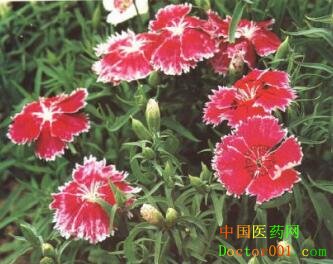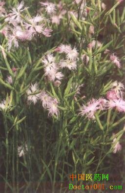 【標(biāo)題】 瞿麥 【拼音】 Qumai 【概述】 為石竹科植物瞿麥Dianthus superbus L.和石竹D. chinensis L.的干燥地上部分。全國(guó)大部分地區(qū)有分布,主產(chǎn)于河北、河南、遼寧、江蘇等地。夏、秋二季花果期采割,除去雜質(zhì),曬干,切段生用。 【性味歸經(jīng)】 苦,寒。歸心、小腸經(jīng)。 【功效】 利尿通淋,破血通經(jīng)。 【應(yīng)用】 1.淋證。本品苦寒泄降,能清心與小腸火,導(dǎo)熱下行,有利尿通淋之功,為治淋常用藥。尤以熱淋最為適宜。常與萹蓄、木通、車前子同用,如八正散(《和劑局方》);治小便淋瀝有血,則與梔子、甘草等同用,如立效散(《和劑局方》);治石淋,與石韋、滑石、冬葵子配伍,如石韋散(《癥治匯補(bǔ)》); 2.閉經(jīng),月經(jīng)不調(diào)。本品能破血通經(jīng)。對(duì)于血熱瘀阻之經(jīng)閉或月經(jīng)不調(diào)尤宜,常與桃仁、紅花、丹參、赤芍等同用。 【注意】 孕婦忌服。 【用法用量】 煎服,9~15g。 【臨床研究】 1.化學(xué)成分:瞿麥含花色苷、水楊酸甲酯、丁香油酚、維生素A樣物質(zhì)、皂苷、糖類。 2.藥理作用:瞿麥煎劑有利尿作用,其穗作用較莖強(qiáng)。還有興奮腸管,抑制心臟,降低血壓,影響腎血容積作用。對(duì)桿菌和葡萄球菌均有抑制作用。 3.臨床研究: 據(jù)報(bào)道,用瞿麥、栝樓根、山藥、附子、茯苓,水煎服,治療糖尿病。有良效(河南中醫(yī),1994,5:373)。 【參考文獻(xiàn)】 1.《日華子本草》:“催生,治月經(jīng)不通,破血塊,排膿。” 2.《本草備要》:“降心火,利小腸,逐膀胱邪熱,為治淋要藥。” 【圖片】 瞿麥 ![]() 瞿麥植株花葉 ![]() 矍麥 ![]() 石竹 ![]() 藥材瞿麥 ![]() 藥材石竹 ![]() 【表格】 瞿麥《中藥歌決》 【歌決】 瞿麥苦寒心小腸,利尿通經(jīng)消腫脹; 諸癃經(jīng)閉癰腫痛,血淋水腫服安康。 (責(zé)任編輯:Doctor001) |