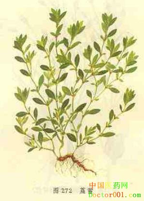 【標題】 萹蓄 【拼音】 Bianxu 【概述】 為蓼科植物萹蓄Polygonum aviculare L.的干燥地上部分。全國大部分地區均產,主產于河南、四川、浙江、山東、吉林、河北等地。野生或栽培。夏季葉茂盛時采收。割取地上部分,除去雜質,切斷,曬干,生用。 【性味歸經】 苦,微寒。歸膀胱經。 【功效】 利尿通淋,殺蟲止癢。 【應用】 1.淋證。本品性微寒,入膀胱經,清利下焦濕熱。多用于熱淋、石淋,常與木通、瞿麥、車前子同用,如八正散《和劑局方》;用于血淋,與大薊、小薊、白茅根等同用。 2.蟲證,濕疹,陰癢。本品苦能燥濕,微寒清熱,又善“殺三蟲”。用治蛔蟲病,蟯蟲病,鉤蟲病。用時宜煎湯空腹服,以提高療效。治蛔蟲腹痛,面青,如《藥性論》以單味濃煎服用;治小兒蟯蟲,下部癢,如《食醫心鏡》單味水煎,空腹飲之,還可用本品煎湯,熏洗肛門;用于濕疹、濕瘡、陰癢等證,可單味煎水外洗,亦可配伍地膚子、蛇床子、荊芥等煎水外洗。 【注意】 脾虛者慎用。 【用法用量】 煎服,9~15g。鮮者加倍。外用適量。 【臨床研究】 1.化學成分:本品含槲皮素、萹蓄苷、槲皮苷、咖啡酸、綠原酸、鉀鹽、硅酸等。 2.藥理作用:萹蓄有顯著的利尿作用。有驅蛔蟲、蟯蟲及緩下作用。對葡萄球菌、福氏痢疾桿菌、綠膿桿菌及多種皮膚真菌均有抑制作用。其水及乙醇提取物能促進血液凝固,增強子宮張力。靜脈注射有降壓作用。 3.臨床研究: 據報道,用苧麻線 點燃后灸于所取穴位 ,同時取萹蓄,水煎當茶飲,治療牙痛 ,療效滿意(針灸臨床雜志 1999,9:38 )。 用萹蓄制成糖漿,口服,治療急性菌痢,大多痊愈(湖北衛生,1973,41)。用萹蓄、薏苡仁,水煎服,治療鞘膜積液,有良效(浙江中醫雜志,1982,8:373)。 【參考文獻】 1.《神農本草經》:“主浸淫疥瘙,疽痔,殺三蟲。” 2.《本草匯言》:“利濕熱,通小便之藥也。” 【圖片】 匾蓄 ![]() 藥材匾蓄 ![]() 萹蓄 萹蓄植株 ![]() 【表格】 萹蓄《中藥歌決》 【歌決】 萹蓄苦平歸膀胱,利尿通淋療瘍瘡; 濕熱尿閉膀胱炎,黃疸霍亂疥瘡瘍。 (責任編輯:Doctor001) |