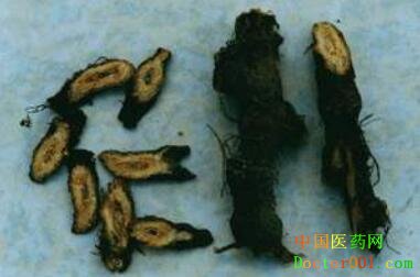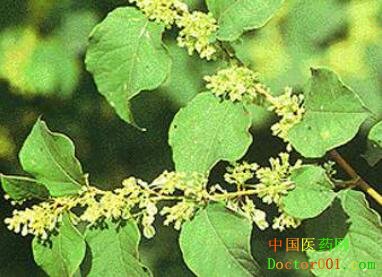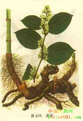 【標題】 虎杖 【拼音】 Huzhang 【概述】 為蓼科植物虎杖Polygonum cuspidatum Sieb. et Zucc. 的干燥根莖和根。我國大部分地區均產,主產于江蘇,江西、山東、四川等地。春、秋二季采挖,除去須根,洗凈,趁新鮮切短段或厚片,曬干。生用或鮮用。 【性味歸經】 微苦,微寒。歸肝、膽、肺經。 【功效】 利濕退黃,清熱解毒,散瘀止痛,化痰止咳. 【應用】 1.濕熱黃疸,淋濁,帶下。本品苦寒,有清熱利濕之功,治濕熱黃疸,可單用本品煎服即效,亦可與茵陳、黃柏、梔子配伍,效力更佳;治濕熱蘊結膀胱之小便澀痛,淋濁帶下等,單用即效,如(《姚僧里集驗方》)以此為末,米飲送下,治五淋,亦可配利尿通淋藥同用。 2.水火燙傷,癰腫瘡毒,毒蛇咬傷。本品入血分,有涼血清熱解毒作用。若水火燙傷而致膚腠灼痛或潰后流黃水者,單用研末,香油調敷,亦可與地榆、冰片共研末,調油敷患處;若濕毒蘊結肌膚所致癰腫瘡毒,以虎杖根燒灰貼,或煎湯洗患處;若治毒蛇咬傷,可取鮮品搗爛敷患處,亦可煎濃湯內服。 3.經閉,癥瘕,跌打損傷。虎杖有活血散瘀止痛之功。治經閉、痛經,常與桃仁、延胡索、紅花等配用;治癥瘕,如(《千金方》)以本品配土瓜根、牛膝合用;治跌打損傷疼痛,可與當歸、乳香、沒藥、三七等配用。 2.肺熱咳嗽。本品既能苦降泄熱,又能化痰止咳,治肺熱咳嗽,可單味煎服也可與貝母、枇杷葉、杏仁等配伍使用; 本品還有瀉熱通便作用,可用于熱結便秘。 【注意】 孕婦忌服。 【用法用量】 煎服,9~15g。外用適量。 【臨床研究】 1.化學成分:含虎杖苷、黃酮類、大黃素、大黃素甲醚、白藜蘆醇、多糖。 2.藥理作用:本品有瀉下、祛痰止咳、降壓、止血、鎮痛作用。煎液對金黃色葡萄球菌、綠膿桿菌等多種細菌均有抑制作用。對某些病毒亦有抑制作用。 3.臨床研究: 據報道,虎杖根,加水煎取,待溫坐浴,治療真菌性陰道炎,療效頗佳(四川中醫,1986,11:26)。虎杖粉內服,治療胃出血,有效(浙江中醫雜志,1980,5:210)。 虎杖根干燥制成片,內服,治療高脂血癥,有明顯療效。(中華醫學雜志,1975,5:339)。 4.不良反應:內服本品每日30g,個別患者有食欲下降,嘔吐,腹瀉、頭暈,偶見心臟早搏。因此本品仍不宜大劑量及長期服用。一般以不超過30g為宜。 【參考文獻】 1.《名醫別錄》:“主通利月水,破流血癥結。” 2.《日華子本草》:“治產后惡血不下,心腹脹滿,排膿,主瘡癤癰者,婦人血暈,撲傷瘀血,破風毒結氣,” 3.《本草綱目》:“治男婦諸般淋疾。” 【圖片】 藥材虎杖 ![]() 虎杖 虎杖《中藥學》 ![]() 虎杖《常用中藥》 ![]() 虎杖《本草綱目》 ![]() 虎杖植株 ![]() 虎杖藥材及飲片 (責任編輯:Doctor001) |
