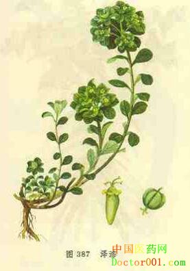 【標題】 澤漆 【拼音】 Zeqi 【概述】 為大戟科植物澤漆Euphorbia helioscopia L. 的干燥全草。我國大部分地區均有分布。多為野生。4~5月開花時采收。除去根及泥沙,曬干,生用。 【性味歸經】 辛、苦,微寒。有毒。歸大腸、小腸、肺經。 【功效】 利水消腫,化痰止咳,解毒散結。 【應用】 1.水腫證。本品苦寒降泄,有較強的利水消腫作用。治通身浮腫,腹水脹滿,與赤小豆、茯苓、鯉魚等同用,如澤漆湯(《千金方》)。 2.咳喘證。本品辛宣苦降,有宣肺降氣,化痰止咳之功。常用于痰飲喘咳,與半夏、生姜、桂枝等同用,如澤漆湯(《金匱要略》);用于肺熱咳喘,可與桑白皮、地骨皮等同用。 3.瘰疬,癬瘡。澤漆有化痰散結,解毒消腫的作用。用于瘰疬,如《便民圖纂方》,單味熬成膏,以椒、蔥、槐枝煎湯洗凈患處,再搽此膏,亦可配伍浙貝母、夏枯草、牡蠣等用;用于癬瘡,如《衛生易簡方》單味為末,油調搽之。 【注意】 本品苦寒降泄,易傷脾胃,脾胃虛寒者及孕婦慎用。本品有毒,不宜過量或長期使用。 【用法用量】 煎服,5~10g。外用適量。 【臨床研究】 1.化學成分:澤漆含槲皮素-5,3-二-D-半乳糖苷、澤漆皂苷、丁酸、澤漆醇、β-二氫巖藻甾醇、葡萄糖、果糖。 2.藥理作用:澤漆對結核桿菌、金黃色葡萄球菌、綠膿桿菌、傷寒桿菌有抑制作用。能抑制支氣管腺體中酸性粘多糖合成和使痰量減少。 3.臨床研究: 據報道,用提取的澤漆新苷,口服,治療急 性支氣管炎,慢性支氣管炎單純型,有良效。副反應有:口干、咽痛、尿熱、便秘等。(中西醫結合雜志,1985,1:39)。用澤漆,水煎服。亦可隨證加減,治療乳糜尿,有良效。(浙江中醫雜志,2001,4:158)。 水煎澤漆加大棗煮至水干為止,每天食大棗,治急慢性咽炎(四川中醫,1986,3:)。 4.不良反應: 澤漆的乳狀汁液對皮膚、粘膜有很強的刺激性。接觸皮膚可致發紅,甚至發炎潰爛。如誤服鮮草或乳白汁液后,口腔、食管、胃粘膜均可發炎、糜爛,有灼痛、惡心、嘔吐、腹痛、腹瀉水樣便,嚴重者可致脫水,甚至出現酸中毒。但澤漆小鼠灌胃125g/kg亦未致死。臨床用其煎液內服,即使劑量大至150g/天,也末見明顯毒性反應,可能因有毒成分不溶于水。個別報道僅有口干、胃部不適、上腹疼痛等輕度反應,但僅占服藥者的6.89%。臨床使用,宜從小量開始,逐步加量,達到安全有效的用藥的目的。 【參考文獻】 1.《神農本草經》:“主皮膚熱,大腹水氣,四肢面目浮腫。” 2.《醫林纂要》:“瀉肺降氣,行水去熱。 3.《植物名實圖考》:“煎熬為膏,敷無名腫毒。” 【圖片】 澤漆 ![]() 澤漆全草 ![]() 【表格】 澤漆《中藥歌決》 【歌決】 澤漆苦寒歸肺腸,解熱利尿消腫脹; 瘰疬結核四肢腫,尿澀痢疾疥瘡瘍。 (責任編輯:Doctor001) |