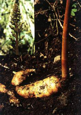 【標題】 天麻 【拼音】 Tianma 【概述】 為蘭科植物天麻Gastrodia elata Bl.的干燥塊莖。主產于四川、云南、貴州等地。立冬后至次年清明前采挖,冬季莖枯時采挖者名“冬麻”,質量優良;春季發芽時采挖者名“春麻”,質量較差。采挖后,立即洗凈,蒸透,敞開低溫干燥。用時潤透或蒸軟,切片。 【性味歸經】 甘,平。歸肝經。 【功效】 息風止痙,平抑肝陽,祛風通絡。 【應用】 1.肝風內動,驚癇抽搐。本品主入肝經,功能息風止痙,且味甘質潤,藥性平和。故可用治各種病因之肝風內動,驚癇抽搐,不論寒熱虛實,皆可配伍應用。如治小兒急驚風,常與羚羊角、鉤藤、全蝎等息風止痙藥同用,如鉤藤飲(《醫宗金鑒》);用治小兒脾虛慢驚,則與人參、白術、白僵蠶等藥配伍,如醒脾丸(《普濟本事方》);用治小兒諸驚,可與全蝎、制南星、白僵蠶同用,如天麻丸(《魏氏家藏方》),若用治破傷風痙攣抽搐、角弓反張,又與天南星、白附子、防風等藥配伍,如玉真散(《外科正宗》)。 2.眩暈,頭痛。本品既息肝風,又平肝陽,為治眩暈、頭痛之要藥。不論虛證、實證,隨不同配伍皆可應用。用治肝陽上亢之眩暈、頭痛,常與鉤藤、石決明、牛膝等同用,如天麻鉤藤飲(《雜病證治新義》);用治風痰上擾之眩暈、頭痛,痰多胸悶者,常與半夏、陳皮、茯苓、白術等同用,如半夏白術天麻湯(《醫學心悟》);若頭風攻注,偏正頭痛,頭暈欲倒者,可配等量川芎為丸,如天麻丸(《普濟方》)。 3.肢體麻木,手足不遂,風濕痹痛。本品又能祛外風,通經絡,止痛。用治中風手足不遂,筋骨疼痛等,可與沒藥、制烏頭、麝香等藥配伍,如天麻丸(《圣濟總錄》);用治婦人風痹,手足不遂,可與牛膝、杜仲、附子浸酒服,如天麻酒(《十便良方》);若治風濕痹痛,關節屈伸不利者,多與秦艽、羌活、桑枝等祛風濕藥同用,如秦艽天麻湯。(《醫學心悟》)。 【用法用量】 煎服,3~9g。研末沖服,每次1~1.5g。 【成藥】 密環菌 【臨床研究】 1.化學成分:本品含天麻苷,天麻苷元,β-甾谷醇和胡蘿卜苷,檸蒙酸及其單甲酯,棕櫚酸、琥珀酸和蔗糖等;尚含天麻多糖,維生素A,多種氨基酸,微量生物堿,多種微量元素,如鉻、錳、鐵、鈷、鎳、銅、鋅等。 2.藥理作用:天麻水、醇提取物及不同制劑,均能使小鼠自發性活動明顯減少,且能延長巴比妥鈉、環己烯巴比妥鈉引起的小鼠睡眠時間,可抑制或縮短實驗性癲癇的發作時間,天麻還有降低外周血管,腦血管,和冠狀血管阻力,并有降壓,減慢心率及鎮痛抗炎作用,天麻多糖有免疫活性。 3.臨床研究: 據報道,用天麻注射液肌注治療以頭痛、頭暈、睡眠障礙為主要癥狀的腦外傷綜合征66例,總有效率為97%(新藥與臨床,1985,2:8);用天麻注射液治療輕型破傷風,用藥后15~120分鐘顯效,病人安靜,抽搐次數減少,顯示出鎮靜作用(陜西新醫藥,1981,1:45);用天麻、川芎、法半夏治療眩暈癥90例,總有效率為94.4%(實用醫學雜志,1994,1:50)。另有用天麻等治療神經衰弱、神經痛、面肌痙攣、高脂血癥、老年血管性癡呆等。 4.不良反應:天麻及天麻制劑偶有過敏性反應及中毒的發生。如:口服天麻粉引起蕁麻疹藥疹;口服天麻丸引起過敏性紫癜;肌注天麻注射液致過敏性休克;大劑量燉服天麻致急性腎功能衰竭及昏迷等。天麻中毒解救的方法為:早期催吐,洗胃;出現過敏性反應及腎功能衰竭時,可對癥處理。 【參考文獻】 1.《開寶本草》:“主諸風濕痹,四肢拘攣,小兒風癇、驚氣,利腰膝,強筋力。” 2.《用藥法象》:“療大人風熱頭痛;小兒風癇驚悸;諸風麻痹不仁;風熱語言不遂。” 3.《本草匯言》:“主頭風,頭痛,頭暈虛旋,癲癇強痙,四肢攣急,語言不順,一切中風,風痰。” 【圖片】 天麻 ![]() 天麻《中藥學》 ![]() 天麻《本草綱目》 ![]() 天麻的根 ![]() 天麻藥材及飲片 ![]() 藥材天麻 ![]() 藥材天麻橫切面 ![]() 藥材天麻橫切面(偏振光下) ![]() 【表格】 天麻《中藥歌決》 【歌決】 天麻甘平歸肝經,熄風鎮痙止疼痛; 肢麻抽搐身偏廢,頭痛眩暈兒驚風。 (責任編輯:Doctor001) |