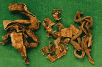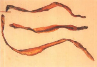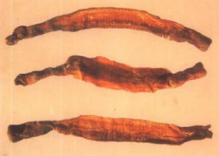 【標(biāo)題】 地龍 【拼音】 Dilong 【概述】 為鉅蚓科動物參環(huán)毛蚓Pheretima aspergillum (E. Perrier)、通俗環(huán)毛蚓Pheretima vulgaris Chen、威廉環(huán)毛蚓Pheretima guillelmi (Michaelsen)或櫛盲環(huán)毛蚓Pheretima pectinifera Michaelsen的干燥體。前一種習(xí)稱“廣地龍”,主產(chǎn)于廣東、廣西、福建等地;后三種習(xí)稱“滬地龍”,主產(chǎn)于上海一帶。廣地龍春季至秋季捕捉,滬地龍夏秋捕捉,及時剖開腹部,除去內(nèi)臟及泥砂,洗凈,曬干或低溫干燥,生用或鮮用。 【性味歸經(jīng)】 咸,寒。歸肝、脾、膀胱經(jīng)。 【功效】 清熱定驚,通絡(luò),平喘,利尿。 【應(yīng)用】 1.高熱驚癇,癲狂。本品性寒,既能息風(fēng)止痙,又善于清熱定驚,故適用于熱極生風(fēng)所致的神昏譫語、痙攣抽搐及小兒驚風(fēng),或癲癇、癲狂等癥。如《本草拾遺》治狂熱癲癇,即以本品同鹽化為水,飲服;《攝生眾妙方》治小兒急慢驚風(fēng),則用本品研爛,同朱砂作丸服。治高熱抽搐驚癇之癥,多與鉤藤、牛黃、白僵蠶、全蝎等息風(fēng)止痙藥同用。 2.氣虛血滯,半身不遂。本品性走竄,善于通行經(jīng)絡(luò),常與黃芪、當(dāng)歸、川芎等補氣活血藥配伍,治療中風(fēng)后氣虛血滯,經(jīng)絡(luò)不利,半身不遂,口眼斜等癥,如補陽還五湯(《醫(yī)林改錯》)。 3.痹證。本品長于通絡(luò)止痛,適用于多種原因?qū)е碌慕?jīng)絡(luò)阻滯、血脈不暢,肢節(jié)不利之癥。性寒清熱,尤適用于關(guān)節(jié)紅腫疼痛、屈伸不利之熱痹,常與防己、秦艽、忍冬藤、桑枝等除濕熱、通經(jīng)絡(luò)藥物配伍;如用治風(fēng)寒濕痹,肢體關(guān)節(jié)麻木、疼痛尤甚、屈伸不利等癥,則應(yīng)與川烏、草烏、南星、乳香等祛風(fēng)散寒,通絡(luò)止痛藥配伍,如小活絡(luò)丹(《和劑局方》)。 4.肺熱哮喘。本品性寒降泄,長于清肺平喘。用治邪熱壅肺,肺失肅降之喘息不止,喉中哮鳴有聲者,單用研末內(nèi)服即效;亦可用鮮地龍水煎,加白糖收膏用。或與麻黃、杏仁、黃芩、葶藶子等同用,以加強清肺化痰、止咳平喘之功。 5.小便不利,尿閉不通。本品咸寒走下入腎,能清熱結(jié)而利水道。用于熱結(jié)膀胱,小便不通,可單用,或配伍車前子、木通、冬葵子等同用。 此外,本品有降壓作用,常用治肝陽上亢型高血壓病。 【用法用量】 煎服,4.5~9g。鮮品10~20g。研末吞服,每次1~2g。外用適量。 【臨床研究】 1.化學(xué)成分:本品含多種氨基酸,以谷氨酸、天冬氨酸、亮氨酸含量最高;含鐵、鋅、鎂、銅、鉻等微量元素;含花生四烯酸、琥珀酸等有機酸。還含蚯蚓解熱堿、蚯蚓素、蚯蚓毒素、黃嘌呤、次黃嘌呤、黃色素及酶類等成分。 2.藥理作用:蚯蚓水煎液及蚯蚓解熱堿有良好的解熱作用;熱浸液、醇提取物對小鼠和家兔均有鎮(zhèn)靜、抗驚厥作用;廣地龍次黃嘌呤具有顯著的舒張支氣管作用;并能拮抗組織胺及毛果蕓香堿對支氣管的收縮作用;廣地龍酊劑、干粉混懸液、熱浸液、煎劑等,均有緩慢而持久的降壓作用;地龍?zhí)崛∥锞哂欣w溶和抗凝作用。此外,地龍還具有增強免疫、抗腫瘤、抗菌、利尿、興奮子宮及腸平滑肌作用。 3.臨床研究: 據(jù)報道,用地龍白糖浸出液治療Ⅰo至淺Ⅱo水火燙傷、燒傷50例,1周左右治愈(赤腳醫(yī)生雜志,1974,4:43);用鮮地龍焙干,研末,加白糖,晨起1次頓服,治療泌尿系結(jié)石5例,均愈(浙江中醫(yī)雜志,1987,1:42);用地龍液:新鮮地龍若干條、白糖,按比例攪拌出液體即成。每次20ml,治療慢性腎功能衰竭14例,取效較好(遼寧中醫(yī)雜志,1999,10:477)。另有用地龍等治療乙腦、癲癇、精神分裂癥、脈管炎、腮腺炎等。 4.不良反應(yīng):地龍口服用量過大可致中毒。主要表現(xiàn)為:頭痛,頭昏,血壓先升高后降低,腹痛,胃腸道有時有出血現(xiàn)象,心悸,呼吸困難。又復(fù)方地龍注射液肌注可引起過敏性休克。故使用地龍應(yīng)注意:⑴掌握用藥劑量;⑵注意加工炮制;⑶過敏體質(zhì)應(yīng)忌用;⑷血壓低者禁用。中毒救治的一般療法為:地龍制劑引起過敏反應(yīng)時,可按過敏反應(yīng)常規(guī)處理;中醫(yī)療法:(1)中毒后立即服鹽水1杯,即解。(2)蔥3根,甘草15g,水煎服。 【參考文獻】 1.《本草拾遺》:“療溫病大熱,狂言,主天行諸熱,小兒熱病癲癇。” 2.《本草綱目》:“性寒而下行,性寒故能解諸熱疾,下行故能利小便,治足疾而通經(jīng)絡(luò)也。”“主傷寒瘧疾,大熱狂煩,及大人小兒小便不通,急慢驚風(fēng),歷節(jié)風(fēng)痛。” 【圖片】 參環(huán)毛蚓 ![]() 參環(huán)毛蚓《中藥學(xué)》 ![]() 地龍 ![]() 威廉環(huán)毛蚓 ![]() 廣地龍/廣地龍片/土地龍 ![]() 櫛毛環(huán)毛蚓 ![]() 藥材廣地龍 ![]() 藥材滬地龍 ![]() 通俗環(huán)毛蚓 ![]() 【表格】 地龍《中藥歌決》 【歌決】 地龍咸腥藥性寒,歸經(jīng)入脾胃腎肝; 解熱止痛平哮喘,身痛尿難久哮喘。 (責(zé)任編輯:Doctor001) |