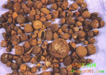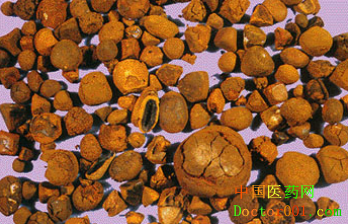 【標題】 牛黃 【拼音】 Niuhuang 【概述】 為牛科動物牛Bos taurus domesticus Gmelin干燥的膽結石。主產于北京、天津、內蒙、陜西、新疆、青海、河北、黑龍江等地。牛黃分為膽黃和管黃二種,以膽黃質量為佳。宰牛時,如發現膽囊、膽管或肝管中有牛黃,即濾去膽汁,將牛黃取出,除去外部薄膜,陰干,研極細粉末。 【性味歸經】 甘,涼。歸心、肝經。 【功效】 化痰開竅,涼肝息風,清熱解毒。 【應用】 1.熱病神昏。本品性涼,其氣芳香,入心經,能清心,祛痰,開竅醒神。故用治溫熱病熱入心包及中風,驚風,癲癇等痰熱阻閉心竅所致神昏譫語,高熱煩躁,口噤,舌蹇,痰涎壅塞等癥,常與麝香、冰片、朱砂、黃連、梔子等開竅醒神,清熱解毒之品配伍,如安宮牛黃丸(《溫病條辨》)。 2.小兒驚風,癲癇。本品入心、肝二經,有清心,涼肝,息風止痙之功。常用治小兒急驚風之壯熱,神昏,驚厥抽搐等癥,每與朱砂、全蝎、鉤藤等清熱息風止痙藥配伍,如牛黃散(《證治準繩》);若治痰蒙清竅之癲癇發作,癥見突然仆倒,昏不知人,口吐涎沫,四肢抽搐者,可與珍珠、遠志、膽南星等豁痰、開竅醒神、止痙藥配伍,如癇證鎮心丹(《中醫內科學講義》上海科技出版社,1964,160)。 3.口舌生瘡,咽喉腫痛,牙痛,癰疽疔毒。本品性涼,為清熱解毒之良藥,用治火毒郁結之口舌生瘡,咽喉腫痛,牙痛,常與黃芩、雄黃、大黃等同用,如牛黃解毒丸(《全國中藥成藥處方集》);若咽喉腫痛,潰爛,可與珍珠為末吹喉,如珠黃散(《絳囊撮要》);治療癰疽,疔毒,癤腫等,以牛黃與金銀花、草河車、甘草同用,如牛黃解毒丸(《保嬰撮要》);亦可用治乳巖、橫痃、痰核、流注、瘰疬、惡瘡等證,每與麝香、乳香、沒藥同用,如犀黃丸(《外科證治全生集》)。 【注意】 非實熱證不宜用,孕婦慎用。 【用法用量】 入丸、散劑,每次0.15~0.35g。外用適量,研末敷患處。 【臨床研究】 1.化學成分:本品含膽酸、脫氧膽酸、膽甾醇,以及膽色素、麥角甾醇、維生素D、鈉、鈣、鎂、鋅、鐵、銅、磷等;尚含類胡蘿卜素及丙氨酸、甘氨酸等多種氨基酸;還含粘蛋白、脂肪酸及肽類(SMC)成分。 2.藥理作用:牛黃有鎮靜抗驚厥及解熱作用,可增強離體蛙心心肌收縮力;牛黃主要成分膽紅素有降壓及抑制心跳作用;牛黃水溶液成分SMC具有膽囊收縮作用,所含膽酸,尤其是脫氧膽酸,均能松弛膽道口括約肌,促進膽汁分泌而有利膽作用;牛黃酸對四氯化碳引起的急性及慢性大鼠肝損害有顯著的保護作用;家兔靜脈點滴牛黃,可使紅細胞顯著增加;牛黃還有抗炎、止血、降血脂等作用。 3.臨床研究: 據報道,以牛黃、麝香為主組成的牛黃千金散,用燈心草、薄荷、金銀花煎湯沖服,治療小兒高熱驚厥,僅服一帖即奏效如神(河北中醫,1984,4:24);用牛黃解毒丸加生理鹽水外搽,治療帶狀皰疹30例,一般6~8天痊愈(中成藥,1989,9:25);用安宮牛黃丸,治療黃疸性肝炎,效果良好(江西中醫藥,1988,6:17)。另有用牛黃等治療乙型腦炎、冠心病、中風、急性胰腺炎、上呼吸道感染等。 4.不良反應:服用牛黃解毒片可出現血小板減少,消化道出血、蕁麻疹型藥疹、過敏性休克、膀胱炎、支氣管哮喘等。服用牛黃制劑中毒或過敏反應主要是超劑量長期服用所致;其次是服藥者屬特異性或過敏性體質。牛黃中毒救治:停止服藥,給予抗過敏、抗休克及對癥治療。 【參考文獻】 1.《神農本草經》:“主驚癇寒熱,熱盛狂痓。” 2.《別錄》:“療小兒百病,諸癇熱,口不開;大人狂癲。又墮胎。” 3.《日用本草》:“治驚癇搐搦煩熱之疾,清心化熱,利痰涼驚。” 【附注】 除黃牛、水牛外,牛科動物牦牛、及野牛的膽結石亦可入藥。另有人工牛黃,系牛膽汁或豬膽汁,經人工提取出膽酸、膽甾醇、膽紅素、無機鹽等,加工制造而成;又有人工培植牛黃,根據天然牛黃的成因機理,在牛膽囊內植入異體,培植成功人工培育牛黃,以緩解天然牛黃藥源之短缺。 【圖片】 牛黃 ![]() 藥材牛黃 ![]() 黃牛 ![]() 【表格】 牛黃《中藥歌決》 【歌決】 牛黃苦涼歸入心,清熱鎮痙強心神; 癲狂癇癥小兒驚,溫病高熱神志昏。 (責任編輯:Doctor001) |