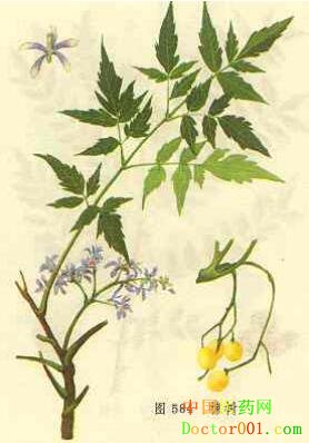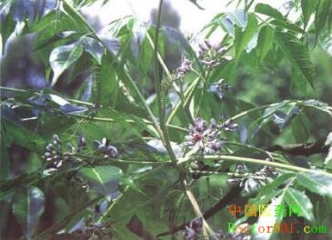 【標題】 苦楝皮 【拼音】 Kulianpi 【概述】 為楝科植物楝Melia azedarach L.或川楝M.toosendan Sieb .et Zucc.的干燥樹皮及根皮。前者全國大部分地區均產,后者主產于四川、湖北、貴州、河南等地。四時可采,但以春、秋兩季為宜。剝取根皮或干皮,刮去栓皮,洗凈。鮮用或切片生用。 【性味歸經】 苦,寒。有毒。歸肝、脾、胃經。 【功效】 殺蟲,療癬。 【應用】 1.蛔蟲,蟯蟲,鉤蟲等病。本品苦寒有毒,有較強的殺蟲作用,可治多種腸道寄生蟲,為廣譜驅蟲中藥。治蛔蟲病,可單用水煎、煎膏或制成片劑、糖漿服用;亦可與使君子、檳榔、大黃等同用,如化蟲丸(《全國中藥成藥處方集》)。與百部、烏梅同煎,取濃液于晚間作保留灌腸,連用2~4天,可治蟯蟲病。與石榴皮同煎服之,可治鉤蟲病,如楝榴二皮飲(《湖北藥物志》)。 2.疥癬,濕瘡。本品能清熱燥濕,殺蟲止癢。單用本品研末,用醋或豬脂調涂患處,可治疥瘡、頭癬、濕瘡、濕疹瘙癢等證。 【注意】 本品有毒,不宜過量或持續久服。有效成分難溶于水,需文火久煎。 【用法用量】 煎服,4.5~9g。鮮品15~30g。外用適量。 【臨床研究】 1.化學成分:本品含川楝素,苦楝酮,苦楝萜酮內酯,苦楝萜醇內酯,苦楝萜酸甲酯,苦楝子三醇等。 2.藥理作用:本品煎劑或醇提取物均對豬蛔蟲有抑制以至麻痹作用。主要成分為川楝素,能透過蟲體表皮,直接作用于蛔蟲肌肉,擾亂其能量代謝,導致收縮性疲勞而痙攣。本品對小鼠蟯蟲有麻痹作用,并能抗血吸蟲。川楝素對肉毒中毒動物有治療作用,使兔腸肌肌張力及收縮力增加,抑制大鼠呼吸等。 3.臨床研究: 苦楝皮150g,鮮蔥白100g,搗爛加醋后制成藥餅,外敷臍周,治療蛔蟲性腸梗阻30例,均獲良效(湖南中醫雜志,1986,2:50);苦楝皮20g,雄黃、白礬各5g,凡士林70g,混合成膏,外用涂搽,治療體癬127例,總有效率91.67%(周鳳梧《中藥學》,1981,660);苦楝皮75g,花椒50g,加水2000ml,武火煎20分鐘,不去渣,加陳醋100ml,涂擦患處,治療疥瘡6例,均于10日內治愈(山西中醫,1994,5:36)。另有用苦楝皮治療滴蟲性腸炎、滴蟲性陰道炎等。 4.不良反應:有毒成分為川楝素和異川楝素。中毒表現:惡心嘔吐、劇烈腹痛、腹瀉、頭暈頭痛、視力模糊、全身麻木、心律不齊、血壓下降、呼吸困難、神志恍惚、狂躁或痿靡、震顫或驚厥,最后因呼吸和循環衰竭而死亡。中毒原因主要是用量過大,或用法不當,或患者體質原因。解救辦法可洗胃,催吐,導瀉,補液及對癥治療;輕者可用綠豆120g,龍眼肉60g,甘草15g,煎水頻服。 【參考文獻】 1.《名醫別錄》:“療蛔蟲,利大腸。” 2.《日華子本草》:“治游風熱毒,風疹惡瘡疥癩,小兒壯熱,并煎湯浸洗。” 3.《滇南本草》:“根皮以殺小兒寸白。” 【圖片】 楝 ![]() 楝B ![]() 楝樹 ![]() 楝樹《本草綱目》 ![]() 苦楝皮 苦楝皮植株 ![]() 苦楝皮藥材及飲片 ![]() 藥材苦楝皮 ![]() (責任編輯:Doctor001) |