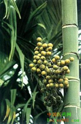 【標題】 檳榔 【拼音】 Binglang 【概述】 為棕櫚科植物檳榔Areca catechu L.的干燥成熟種子。主產于海南、福建、云南、廣西、臺灣等地。春末至秋初采收成熟果實,用水煮后,干燥,除去果皮,取出種子,曬干。浸透切片或搗碎用。 【性味歸經】 苦,辛,溫。歸胃、大腸經。 【功效】 殺蟲消積,行氣,利水,截瘧。 【應用】 1.多種腸道寄生蟲病。本品驅蟲譜廣,對絳蟲、蛔蟲、蟯蟲、鉤蟲、姜片蟲等腸道寄生蟲都有驅殺作用,并以瀉下作用驅除蟲體為其優點。用治絳蟲證療效最佳,可單用(《千金方》),亦可與木香同用,如圣功散(《證治準繩》),現代多與南瓜子同用,其殺絳蟲療效更佳;與使君子、苦楝皮同用,可治蛔蟲病、蟯蟲病;與烏梅、甘草配伍,可治姜片蟲病。 2.食積氣滯,瀉痢后重。本品辛散苦泄,入胃腸經,善行胃腸之氣,消積導滯,兼能緩瀉通便。常與木香、青皮、大黃等同用,治療食積氣滯、腹脹便秘等證,如木香檳榔丸(《儒門事親》);與木香、黃連、芍藥等同用,可治濕熱瀉痢,如芍藥湯(《素問病機氣宜保命集》)。 3.水腫,腳氣腫痛。本品既能利水,又能行氣,氣行則助水運。常與商陸、澤瀉、木通等同用,治療水腫實證,二便不利,如疏鑿飲子(《濟生方》);與木瓜、吳茱萸、陳皮等配伍,用治寒濕腳氣腫痛,如雞鳴散(《證治準繩》)。 4.瘧疾。本品截瘧,常與常山、草果等同用,如截瘧七寶飲(《傷寒素問病機氣宜保命集》)。 【注意】 脾虛便溏或氣虛下陷者忌用;孕婦慎用。 【用法用量】 煎服,3~10g。驅絳蟲、姜片蟲30~60g。生用力佳,炒用力緩;鮮者優于陳久者。 【臨床研究】 1.化學成分:含生物堿0.3%~0.6%,主要為檳榔堿,其余有檳榔次堿,去甲基檳榔堿,去甲基檳榔次堿,檳榔副堿,高檳榔堿,異去甲基檳榔次堿等,均與鞣酸結合而存在。又含脂肪油14%,其中脂肪酸有月桂酸、肉豆蔻酸、棕櫚酸,十四碳烯酸、油酸、亞油酸、硬脂酸等。尚含鞣質及檳榔紅色素。 2.藥理作用:檳榔能使絳蟲蟲體引起馳緩性麻痹,觸之則蟲體伸長而不易斷,故能把全蟲驅出;檳榔堿對豬肉絳蟲有較強的麻痹作用,能使全蟲各部都麻痹,對牛肉絳蟲僅能使頭節和未成熟節片麻痹;檳榔對蟯蟲、蛔蟲、鉤蟲、肝吸蟲、血吸蟲均有麻痹或驅殺作用;對皮膚真菌、流感病毒、幽門螺旋桿菌均有抑制作用;檳榔堿有擬膽堿作用,興奮膽堿受體,促進唾液、汗腺分泌,增加腸蠕動,減慢心率,降低血壓,滴眼可使瞳孔縮小。 3.臨床研究: 檳榔30~120g,帶皮南瓜子50~150g,煎煮取汁,清晨空腹服,30~60分鐘后沖服硫酸鎂粉5~30g,治療絳蟲病22例,全部治愈(中國寄生蟲防治雜志,2001,2:99);新鮮干檳榔果8g,水150ml浸1小時,文火煎至50~70ml,上午空腹服1次,2周為1療程,治療幽門螺旋桿菌感染32例,胃鏡復查后,糜爛性胃炎8例,均獲效,十二指腸球部潰瘍24例,有效23例(中國中西醫結合雜志,1994,4:248);檳榔堿制成眼用藥膜,將其置于眼結膜囊內之穹隆處,治療青光眼患者37例70只眼,一般用藥后10分鐘即開始瞳孔縮小,15分鐘后眼壓逐漸下降(成都中醫學院學報,1980,3:49)。另有用檳榔治療瘧疾、麻痹性腸梗阻、乳糜尿、小兒咳喘等。 【參考文獻】 1.《名醫別錄》:“主消谷,逐水,除痰癖,殺三蟲伏尸,療寸白。” 2.《藥性論》:“宣利五臟六腑壅滯,破堅滿氣,下水腫,治心痛,風血積聚。” 3.《本草綱目》:“治瀉痢后重,心腹諸痛,大小便氣秘,痰氣喘息。療諸瘧,御瘴癘。” 【圖片】 檳榔 ![]() 檳榔《中國藥典》 檳榔《中藥學》 ![]() 檳榔《本草綱目》 ![]() 檳榔及飲片 ![]() 檳榔植株 ![]() 藥材檳榔 ![]() 藥材檳榔橫切面 ![]() 藥材檳榔橫切面(上:外胚乳,下:內胚乳) 【表格】 檳榔《中藥歌決》 【歌決】 檳榔辛溫胃大腸,殺蟲消積通便良; 胸腹氣滯蟲積痛,痰癬癥結腹滿脹。 (責任編輯:Doctor001) |