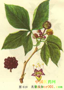 【標題】 五加皮 【拼音】 Wujiapi 【概述】 為五加科植物細柱五加Acanthopanax gracilistylusW.W.Smith的干燥根皮。習稱“南五加皮”。主產于湖北、河南、安徽等地。夏、秋采挖,剝取根皮,曬干。切厚片,生用。 【性味歸經】 辛、苦,溫。歸肝、腎經。 【功效】 祛風濕,補肝腎,強筋骨,利水。 【應用】 1.風濕痹證。本品辛能散風,苦能燥濕,溫能祛寒,且兼補益之功,為強壯性祛風濕藥,尤宜于老人及久病體虛者。治風濕痹證,腰膝疼痛,筋脈拘攣,可單用或配當歸、牛膝、地榆等,如五加皮酒(《本草綱目》);亦可與木瓜、松節同用,如五加皮散(《沈氏尊生書》)。 2.筋骨痿軟,小兒行遲,體虛乏力。本品有溫補之效,能補肝腎,強筋骨。又常用于肝腎不足,筋骨痿軟者,常與杜仲、牛膝等配伍,如五加皮散(《衛生家寶》);治小兒行遲,則與龜甲、牛膝、木瓜等同用,如五加皮散(《保嬰撮要》)。 3.水腫,腳氣。本品能溫腎而除濕利水。治水腫,小便不利,每與茯苓皮、大腹皮、生姜皮、地骨皮配伍,如五皮散(《和劑局方》);若風寒濕壅滯之腳氣腫痛,可與遠志同用,如五加皮丸(《瑞竹堂經驗方》)。 【用法用量】 煎服,4.5~9g;或酒浸、入丸、散服。 【臨床研究】 1.化學成分:本品含丁香苷,刺五加苷B1,右旋芝麻素,16α-羥基-(一)-貝殼松-19-酸,左旋對映貝殼松烯酸,β-谷甾醇,β-谷甾醇葡萄糖苷,硬脂酸,棕櫚酸,亞麻酸,維生素A、B1,揮發油等。 2.藥理作用:五加皮有抗炎、鎮痛、鎮靜作用,能提高血清抗體的濃度、促進單核巨噬細胞的吞噬功能,有抗應激作用,能促進核酸的合成、降低血糖,有性激素樣作用,并能抗腫瘤、抗誘變、抗潰瘍,且有一定的抗排異作用。 【參考文獻】 1.《神農本草經》:“主心腹疝氣腹痛,益氣,療躄,小兒不能行,疽瘡陰蝕。” 2.《名醫別錄》:“主男子陰痿,囊下濕,小便余瀝,女人陰癢及腰脊痛,兩腳疼痹風弱,五緩,虛羸,補中益精,堅筋骨,強志意,久服輕身耐老。” 3.《本草思辨錄》:“五加皮,宜下焦風濕之緩證。若風濕搏于肌膚,則非其所司。古方多浸酒、釀酒及酒調末服之,以行藥勢。” 【附注】 同屬植物作五加皮入藥的尚有:無梗五加 Acanthopanax sessiliflorus (Rupr. et Maxim.) Seem.、紅毛五加 A.giraldii Harms、糙葉五加 A. henryi (Oliv.) Harms、藤五加 A. leucorrhizus (Oliv.) Harms、烏蘞莓五加 A. cissifolius (Griff.) Harms等。 古代所用的五加皮包括五加科五加屬的多種植物,除上述品種外,似亦應包括刺五加Acanthopanax senticosus (Rupr. et Maxim.) Harms在內,而《中國藥典》現已將其作為獨立的藥物收載。現在使用的五加皮藥材,有南五加皮和北五加皮之分。北五加皮為蘿藦科植物杠柳Periploca sepium Bge的根皮(見利水滲濕藥),《中國藥典》以“香加皮”之名收入。南五加皮與北五加皮科屬不同,功效有異,且北五加皮有毒,不應混用。 【圖片】 五加 ![]() 五加皮 ![]() 五加皮植株 ![]() 無梗五加 ![]() 細柱五加 ![]() 藥材五加皮 ![]() 藥材五加皮橫切面 ![]() (責任編輯:Doctor001) |