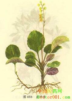 【標題】 鹿銜草 【拼音】 Luxiancao 【概述】 為鹿蹄草科植物鹿蹄草Pyrola calliantha H.Andres或普通鹿蹄草P.decorata H .Andres的干燥全草。全國大部分地區有產。全年均可采挖,除去雜質,曬至葉片較軟時,堆置至葉片變紫褐色,曬干。切段,生用。 【性味歸經】 甘、苦,溫。歸肝、腎經。 【功效】 祛風濕,強筋骨,止血。 【應用】 1.風濕痹證。本品味苦能燥,味甘能補,既能祛風濕,又能入肝腎而強筋骨,常用于風濕日久,痹痛而腰膝無力者,每與白術、羌活、防風、澤瀉等同用,或與桑寄生、獨活、牛膝、杜仲等配伍。 2.月經過多,崩漏,咯血,外傷出血。本品有收斂止血作用,可單用或隨證配伍。治月經過多、崩漏下血,可配棕櫚炭、地榆炭等;治肺癆咯血,可伍白及、阿膠等;治外傷出血,可與三七等研末調敷。 3.久咳勞嗽。本品能補益肺腎而定喘嗽,治肺虛久咳或腎不納氣之虛喘,常與五味子、百合、百部等配伍。 此外,本品尚可用于瀉痢日久。 【用法用量】 煎服,9~15g。外用,適量。 【臨床研究】 1.化學成分:鹿蹄草含鹿蹄草素,N-苯基-2-萘胺,高熊果酚苷,傘形梅笠草素,沒食子酸,原兒茶酸,沒食子鞣質,腎葉鹿蹄草苷,6-O-沒食子酰高熊果酚苷,槲皮素,金絲桃苷,沒食子酰金絲桃苷等。普通鹿蹄草含鹿蹄草素,山柰酚-3-O-葡萄糖苷,槲皮素-3-O-葡萄糖苷等。 2.藥理作用:鹿蹄草有抗炎、降壓作用;能擴張心、腦、脾、腎、四肢、耳血管,增加血流量;能明顯升高血漿cAMP含量;增強免疫功能;對多種細菌有抑制作用。所含N-苯基-2-萘胺、傘形梅笠草素、鹿蹄草素、沒食子酸等對P388淋巴細胞白血病有抑制作用。熊果酚苷在體外能抑制胰島素降解,口服可致糖尿。 3.臨床研究: 鹿蹄草素治療肺炎有較好療效。又報道:鹿蹄草制成茶劑,每次1g,每日3次,代茶飲,治療高血壓病50例,總有效率68.0%(中西醫結合雜志,1986,10:604);以鹿蹄草注射液(每支2ml,含生藥0.5g)肌注,每日2次,每次4ml,同時采用頸部推拿及牽引方法,治療頸性眩暈癥322例,總有效率92.8%(陜西中醫,1990,10:450);將鹿含草醋炒,制成丸劑或片劑,每次3g,每日3次,治療子宮出血100例,有效率91%[科技簡報(浙江),1978,9:23]。另與豬肉同煎服,治療小兒遺尿甚捷。鹿蹄草素治療嬰幼兒泄瀉及急性菌痢療效可靠。 【參考文獻】 1.《滇南本草》:“添精補髓,延年益壽。治筋骨疼痛、痰火之癥,煎點水酒服。” 2.《植物名實圖考》:“治吐血,通經有效!栋不罩尽罚盒砸骊枺瑥娊,健骨,補腰腎,生津液。” 【附注】 在不同地區作鹿銜草藥用的還有:日本鹿蹄草Pyrola japonica Klenze ex Alef.、紅花鹿蹄草 P.incarnata Fisch. ex DC.、圓葉鹿蹄草 P.rotundifolia L.、紫背鹿蹄草 P. atropupurea Franch.、長葉鹿蹄草P. elegantula H. Andr.、短柱鹿蹄草 P. minor L.、腎葉鹿蹄草 P. renifolia Maxim.。 【圖片】 藥材鹿銜草 ![]() 鹿銜草 鹿蹄草 ![]() 鹿蹄草《本草綱目》 ![]() (責任編輯:Doctor001) |