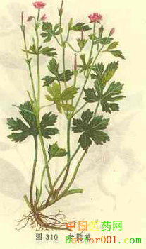 【標(biāo)題】 老鸛草 【拼音】 Laoguancao 【概述】 為牻牛兒苗科植物牻牛兒苗Erodium stephanianum Willd.、老鸛草Geranium wilfordii Maxim.或野老鸛草G.carolinianum L.的干燥地上部分,前者習(xí)稱“長(zhǎng)嘴老鸛草”,后兩者習(xí)稱“短嘴老鸛草”。全國(guó)大部分地區(qū)有產(chǎn)。夏、秋二季果實(shí)近成熟時(shí)采割,曬干。切段,生用。 【性味歸經(jīng)】 辛、苦,平。歸肝、腎、脾經(jīng)。 【功效】 祛風(fēng)濕,通經(jīng)絡(luò),清熱毒,止瀉痢。 【應(yīng)用】 1.風(fēng)濕痹證。本品辛能行散,苦而能燥,性善疏通,有較好的祛風(fēng)濕,通經(jīng)絡(luò)作用。治風(fēng)濕痹痛,麻木拘攣,筋骨酸痛,可單用煎服或熬膏;或配威靈仙、獨(dú)活、紅花等祛風(fēng)通絡(luò)活血之品。 2.泄瀉痢疾。本品能清熱解毒而止瀉痢,治濕熱、熱毒所致泄瀉、痢疾,可單用或與黃連、馬齒莧等配伍。 3.瘡瘍。本品有清熱解毒之功,治瘡瘍內(nèi)服外用皆可。內(nèi)服可與蒲公英、金銀花、紫花地丁等同用;外敷可制成軟膏,以治濕毒蘊(yùn)結(jié)之癰疔瘡癤、濕疹、水火燙傷等,如老鸛草軟膏(《中國(guó)藥典》)。 【用法用量】 煎服,9~15g;或熬膏、酒浸服。外用,適量。 【臨床研究】 1.化學(xué)成分:牻牛兒苗全草含揮發(fā)油,油中主要成分為牻牛兒醇;又含槲皮素。老鸛草全草含鞣質(zhì)及金絲桃苷。 2.藥理作用:老鸛草總鞣質(zhì)(HGT)有明顯的抗炎、抑制免疫和鎮(zhèn)痛作用,有抗癌、抑制誘變作用和抗氧化作用;牻牛兒苗煎劑有明顯的抗流感病毒作用,對(duì)金黃色葡萄球菌等球菌及痢疾桿菌有較明顯的抑制作用;醇提物有明顯的鎮(zhèn)咳作用;西伯利亞老鸛草對(duì)蛋清性關(guān)節(jié)炎有明顯抑制作用;日本產(chǎn)尼泊爾老鸛草的煎劑或干燥提取物,均能抑制十二指腸和小腸的活動(dòng),并促進(jìn)盲腸的逆蠕動(dòng),但劑量過(guò)大,則能促進(jìn)大腸的蠕動(dòng)而出現(xiàn)瀉下作用;老鸛草可能具有黃體酮樣作用或有升高體內(nèi)黃體酮水平的作用。 3.臨床研究: 老鸛草治療細(xì)菌性痢疾有較好療效。另有報(bào)道:用老鸛草合劑(每ml含老鸛草1g),3歲以下5ml,3~8歲10ml,8~14歲15ml,每日3次,治療急性咽炎45例,全部治愈(中國(guó)中西醫(yī)結(jié)合雜志,1998,2:120);老鸛草30~60g,當(dāng)茶沖服或煎服,治療乳腺增生病58例,總有效率93.2%。(中醫(yī)雜志,1983,9:30);老鸛草制成20%眼藥水,每小時(shí)滴眼1次,治療皰疹性角膜炎31例,有效率93.4%。(新醫(yī)藥學(xué)雜志,1973,3:19)。 【參考文獻(xiàn)】 1.《滇南本草》:“祛諸風(fēng)皮膚發(fā)癢,通行十二經(jīng)絡(luò)。治筋骨疼痛,風(fēng)痰痿軟,手足筋攣麻木,利小便,瀉膀胱積熱,攻散諸瘡腫毒,退癆熱發(fā)燒,治風(fēng)火牙疼,疥癩痘疹等癥。兼解諸癆熱,其應(yīng)如響。敷跌打損傷,能定痛治瘀。” 2.《藥性考》:“去風(fēng),疏經(jīng)活血,筋健絡(luò)通。損傷,痹癥,麻木皮瘋,浸酒常飲。” 【附注】 作老鸛草使用的還有:西伯利亞老鸛草 Geranium sibiricum L.,尼泊爾老鸛草 G.nepalense Sweet,塊根老鸛草 G.dahuricum DC.,毛蕊老鸛草 G. eriostemon Fisch.,草原老鸛草 G. Pratense L。 【圖片】 老鸛草 ![]() (責(zé)任編輯:Doctor001) |