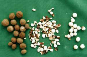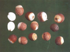 【標題】 芡實 【拼音】 Xianshi 【概述】 為睡蓮科植物芡Euryale ferox Salisb.的成熟種仁。主產于湖南、江西、安徽、山東等地。秋末冬初采收成熟果實,除去果皮,取出種仁,再除去硬殼,曬干。搗碎生用或炒用。 【性味歸經】 甘、澀,平。歸脾、腎經。 【功效】 益腎固精,健脾止瀉,除濕止帶。 【應用】 1.遺精,滑精。本品甘澀收斂,善能益腎固精。治腎虛不固之腰膝酸軟,遺精滑精者,常與金櫻子相須而用,如水陸二仙丹(《仁存堂經驗方》);亦可與蓮子、蓮須、牡蠣等配伍,如金鎖固精丸(《醫方集解》)。 2.脾虛久瀉。本品既能健脾除濕,又能收斂止瀉。可用治脾虛濕盛,久瀉不愈者,常與白術、茯苓、扁豆等藥同用。 3.帶下。本品能益腎健脾、收斂固澀、除濕止帶,為治療帶下證之佳品。治脾腎兩虛之帶下清稀,常與黨參、白術、山藥等藥同用。若治濕熱帶下,則配伍清熱利濕之黃柏、車前子等同用,如易黃湯(《傅青主女科》)。 【用法用量】 煎服,10~15g。 【臨床研究】 1.化學成分:本品主含淀粉、蛋白質、脂肪、碳水化合物、鈣、磷、鐵、硫胺素、核黃素、尼古酸、抗壞血酸等。 2.藥理作用:本品具有收斂、滋養作用。 3.臨床研究: 據臨床報道,用芡實、白果、糯米煮粥服,治療慢性腎炎蛋白尿73例,總有效率達89.1%;亦可將此粥作為治療原發性腎小球腎炎蛋白尿的輔助食療,長期間歇服用(中醫雜志,1985,9:47)。 【參考文獻】 1.《神農本草經》:“主治濕痹腰脊膝痛,補中,除暴疾,益精氣,強志,令耳目聰明”。 2.《本草綱目》:“止渴益腎,治小便不禁,遺精,白濁,帶下”。 3.《本草求真》:“味甘補脾,故能利濕,而使泄瀉腹痛可治,……味澀固 腎,故能閉氣,而使遺帶小便不禁皆愈。” 【圖片】 芡 ![]() 芡《中藥學》 ![]() 芡實 ![]() 芡實/碎芡實/芡實(去種皮) ![]() 芡實《本草圖苑》 ![]() 芡實《本草綱目》 ![]() 藥材芡實 ![]() 【表格】 芡實《中藥歌決》 【歌決】 芡實甘平歸腎脾,健脾補腎強腰膝; 遺精淋濁赤白帶,脾虛瀉痢久濕痹。 (責任編輯:Doctor001) |