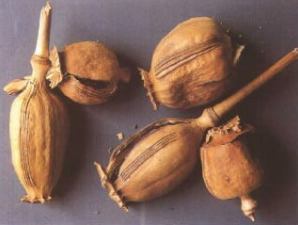 【標(biāo)題】 罌粟殼 【拼音】 Yingshuqiao 【概述】 為罌粟科植物罌粟 Papaver somniferum L. 成熟蒴果的外殼,原產(chǎn)于外國(guó),我國(guó)部分地區(qū)的藥物種植場(chǎng)又少量栽培藥用。夏季采收,去蒂及種子、曬干。蜜炙或醋炒用。 【性味歸經(jīng)】 酸、澀,平。有毒。歸肺、大腸、腎經(jīng)。 【功效】 澀腸止瀉,斂肺止咳,止痛。 【應(yīng)用】 1.久瀉,久痢。本品味酸澀,性平和,能固腸道,澀滑脫,《本草綱目》曰其“為澀腸止瀉之圣藥”,適用于久瀉、久痢而無(wú)邪滯者。治脾虛久瀉不止者,常與訶子、陳皮、砂仁等同用,如罌粟散(《普濟(jì)方》);治脾虛中寒久痢不止者,常與肉豆蔻等同用,如真人養(yǎng)臟湯(《和劑局方》)。若配蒼術(shù)、人參、烏梅、肉豆蔻等可治脾腎兩虛,久瀉不止,如固腸丸《證治準(zhǔn)繩》。 2.肺虛久咳。本品酸收,主入肺經(jīng),具有較強(qiáng)的斂肺氣止咳逆作用,適用于肺虛久咳不止之證。可單用蜜炙研末沖服,或配伍伍烏梅肉,如小百勞散(《宣明論》)。 3.胃痛,腹痛,筋骨疼痛。本品有良好的止痛作用,可用治上述諸痛較劇者。單用有效或配入復(fù)方使用。 【注意】 本品過(guò)量或持續(xù)服用易成癮。咳嗽或?yàn)a痢初起邪實(shí)者忌用。 【用法用量】 煎服,3~6。止咳蜜炙用,止血止痛醋炒用。 【臨床研究】 1.化學(xué)成分: 本品含多種生物堿,如嗎啡、可待因、那可汀、那碎因、罌粟堿、罌粟殼堿等,另含有多糖、內(nèi)消旋肌醇、赤癬醇等。 2.藥理作用: 其所含的嗎啡、可待因等有顯著的鎮(zhèn)痛、鎮(zhèn)咳作用,能使胃腸道及其括約肌的張力提高,消化液分泌減少,便意遲鈍而起止瀉作用。 3.臨床研究: 據(jù)臨床報(bào)道,用罌粟殼、金銀花、,山藥水煎服,治療慢性胃腸炎、結(jié)腸炎、消化不良、特異性胃腸炎、慢性腹瀉等療效顯著(四川中醫(yī),1985,2;18)。用罌粟堿溶于10%葡萄糖溶液中,靜脈點(diǎn)滴,治療突發(fā)性耳聾伴有眩暈及雙耳突發(fā)性耳聾患者,可有不同程度的聽(tīng)力提高(中華耳鼻咽喉科雜志,1984,19,1:5)。用罌粟堿,或合用酚妥拉明,在陰莖根部局部注射用藥。治療陽(yáng)痿病120例,有效率98%(江蘇中醫(yī),1991,3:23~24)。另外尚有用本品治療燙傷、中、小面積燒傷,腦血栓形成、肺栓塞、肢端動(dòng)脈痙攣及動(dòng)脈栓塞性疼痛等。 4.不良反應(yīng):罌粟殼的毒性主要為所含嗎啡、可待因、罌粟堿等成分所致。嗎啡對(duì)呼吸中樞有抑制作用,可通過(guò)胎盤(pán)及乳汁引起新生兒窒息;能使顱內(nèi)壓升高。其慢性中毒主要為成癮。中毒癥狀:初起見(jiàn)煩躁不安,譫妄,嘔吐,全身乏力等,繼而頭暈,嗜睡,脈搏開(kāi)始快,逐漸變?yōu)槁酰讟O度縮小可如針尖大,呼吸淺表而不規(guī)則,可慢至每分鐘2~4次,伴紫紺;可能出現(xiàn)肺水腫,體溫下降,血壓下降,肌肉松弛等。最后呼吸中樞麻痹而死亡。慢性中毒時(shí)可見(jiàn)厭食+便秘+早衰、陽(yáng)痿、消瘦、貧血等癥狀,但不影響工作能力和記憶力。中毒預(yù)防:A.要嚴(yán)格控制用藥劑量;B.避免長(zhǎng)期使用;C.新生兒、孕婦、哺乳期婦女及患有肺氣腫、支氣管哮喘、腦外傷、甲狀腺功能不足者等,禁用本品。中毒的救治:急性中毒時(shí),先用黃酒20~30滴,加入溫開(kāi)水中,讓病人飲服。然后洗胃,不論是口服或肌內(nèi)注射,中毒時(shí)間長(zhǎng)短,均應(yīng)反復(fù)洗胃,洗胃后再用20%活性炭混懸液及50%硫酸鎂溶液注入胃內(nèi)。靜脈輸液。必要時(shí),輔入血漿,呼吸抑制的用呼吸中樞興奮劑,呼吸衰竭,給吸入含5%二氧化碳的氧氣,施行人工呼吸,也可用阿托品、鹽酸丙烯嗎啡及丙烯左嗎喃等。對(duì)癥治療及保護(hù)腎臟。慢性中毒者,應(yīng)逐步減量戒除,同時(shí)給予鎮(zhèn)靜劑。 【參考文獻(xiàn)】 1.《本草綱目》:“罌子粟殼,酸主收澀,故初病不可用之。泄瀉下痢既久,則氣敗不固而腸滑肛,咳嗽諸病既久,則氣散不收而肺脹痛劇,故俱宜此澀之、固之、收之、斂之”。 2.《本草經(jīng)疏》:“若肺家火熱盛,與夫風(fēng)寒外邪未散者,誤用則咳愈增而難治。------如腸胃積滯尚多,濕熱方熾,命門(mén)火盛,濕熱下流為遺精者,誤用之則邪氣無(wú)從而泄,或腹痛不可當(dāng),或攻入手足骨節(jié),腫痛不能動(dòng),或遍身發(fā)腫,或嘔吐不下食,或頭面俱腫,或精竅閉塞,水道不通,變證百出而淹延不起矣,可不慎哉!” 3.《本草求真》:“功專(zhuān)斂肺澀腸固腎,凡久瀉、久痢脫肛、久嗽氣乏,并心腹筋骨諸痛者最宜”。 【圖片】 罌粟 ![]() 罌粟《中藥學(xué)》 ![]() 罌粟《本草綱目》 ![]() 罌粟殼 ![]() 罌粟殼藥材及飲片 ![]() 罌粟植株花 ![]() 藥材罌粟殼 ![]() (責(zé)任編輯:Doctor001) |